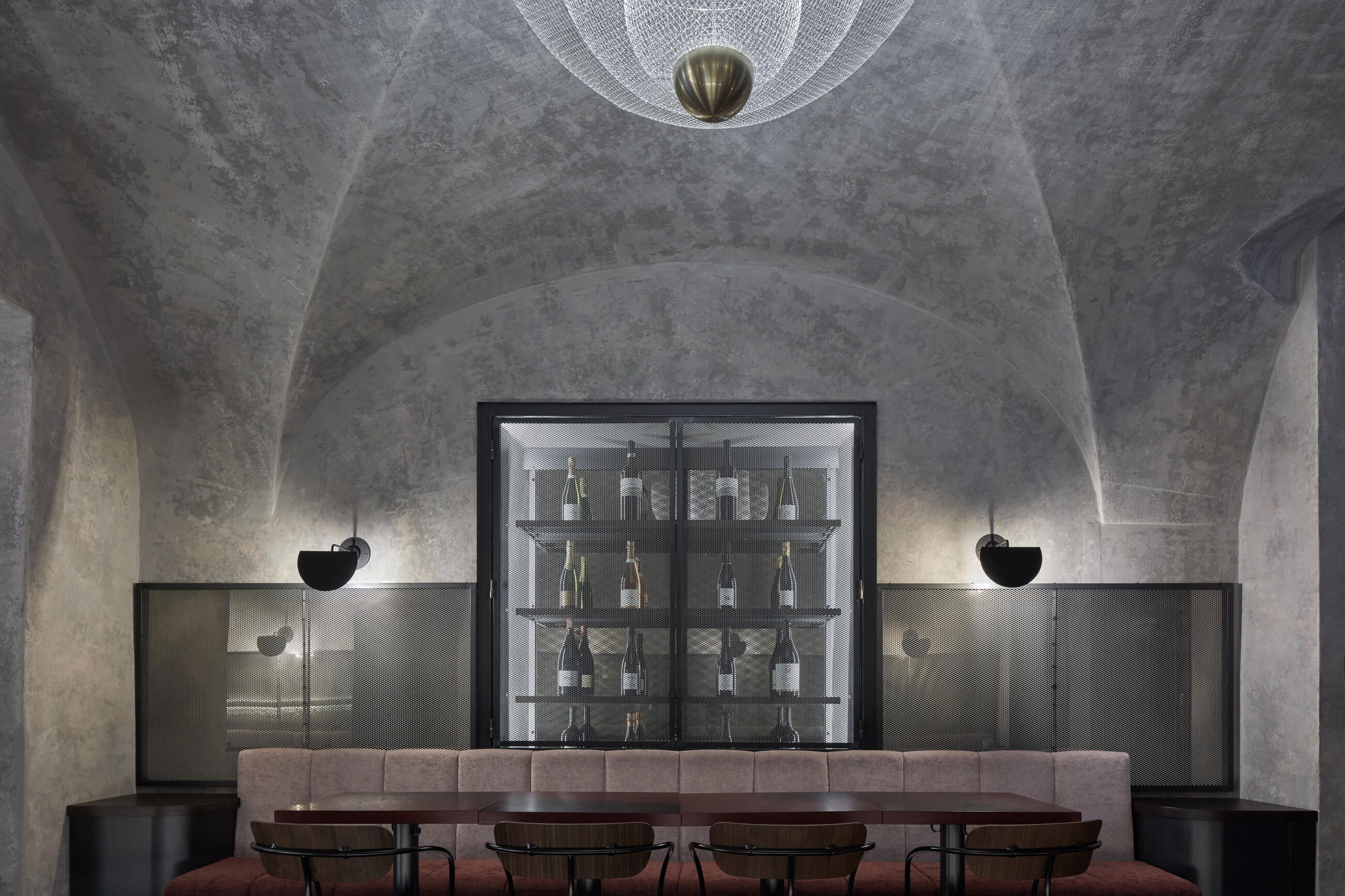 The original assignment was to transform the vaulted interior of an Old Town house into an inviting and cosy place dedicated to the exquisite taste of natural wines. In other words, to fit the purpose of the Autentista Wine Bar. Mr Bogdan Trojak and Mr Antonín Suchánek, the bar owners (not to mention the men behind the successful wine festival “Praha pije víno” or “Prague drinks wine”), expressed their wish to create a space with an atmosphere that would be in harmony with the wines. Authentic wines are a luxury, so the idea was for it to be just as luxurious as the product itself, yet still simple and natural, for such is the reality of authentic wine production.