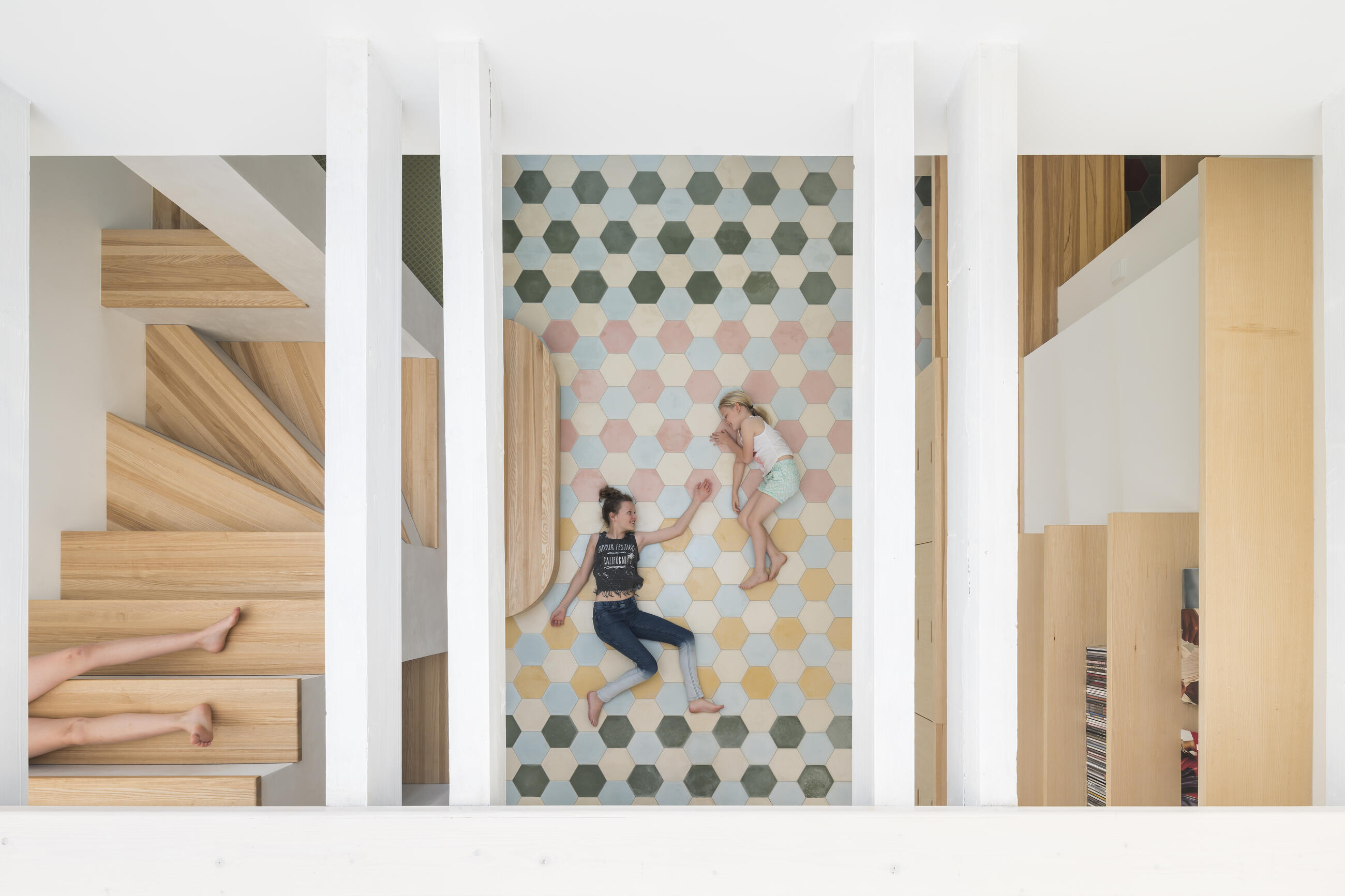 Living in an own historic but individually reconstructed house with a garden just several steps away from an underground station is a dream that can come true for really few families with small children. However, if three such families united their efforts to buy a three-storey villa that needed reconstruction, we were sure it would be a very interesting experiment. And that we have to find a rational way not only to the implementation and to the operation of such housing type, no utopia.