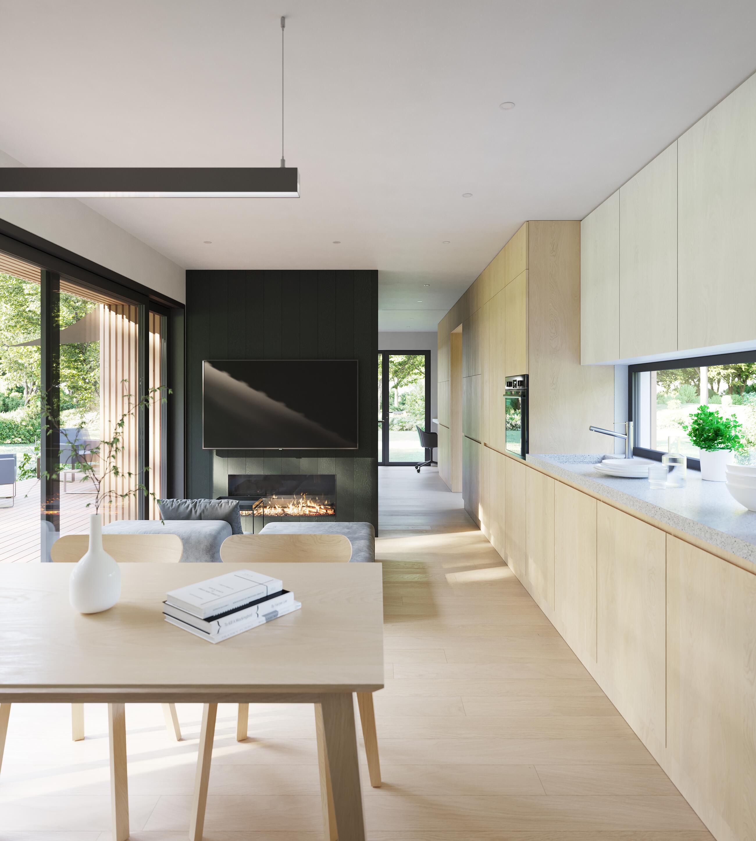 Celkový návrh klade důraz na efektivní využití prostoru a maximální využití přírodních materiálů. Dům splňuje standardy pasivní energetické účinnosti.