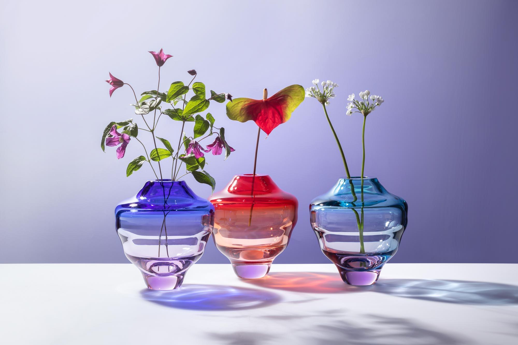 S architekty Jungvirt pracuje dlouhodobě a jeho objekty doplňují realizace od 0,5 Studio nebo Miaow architekti, vybrané vázy doladily i interiér Volmanovy vilu nebo hotelu Four Seasons. Jeho aktuální portfolio včetně designových váz a svítidel je nyní kompletně doplněno o vizualizace a 3D modely, které lze přímo využít v projektech a klientských prezentacích. Nabízí se tak přesná vizuální představa o finálním efektu Jungivrtova skla v interiéru.