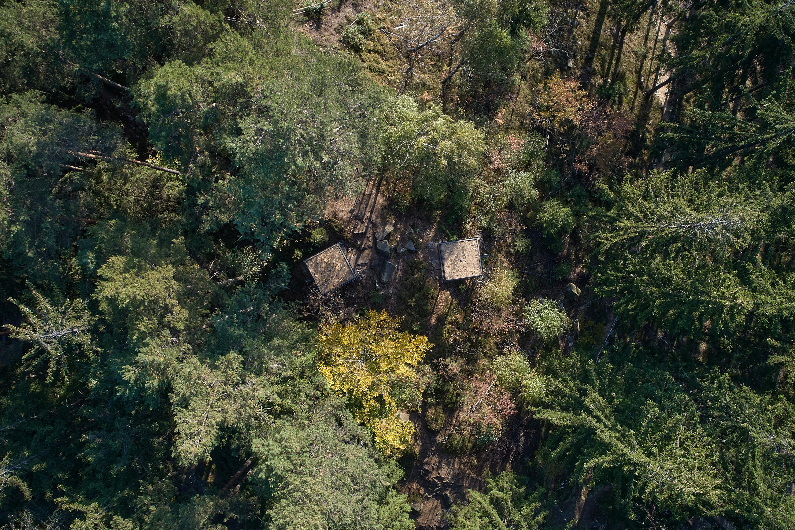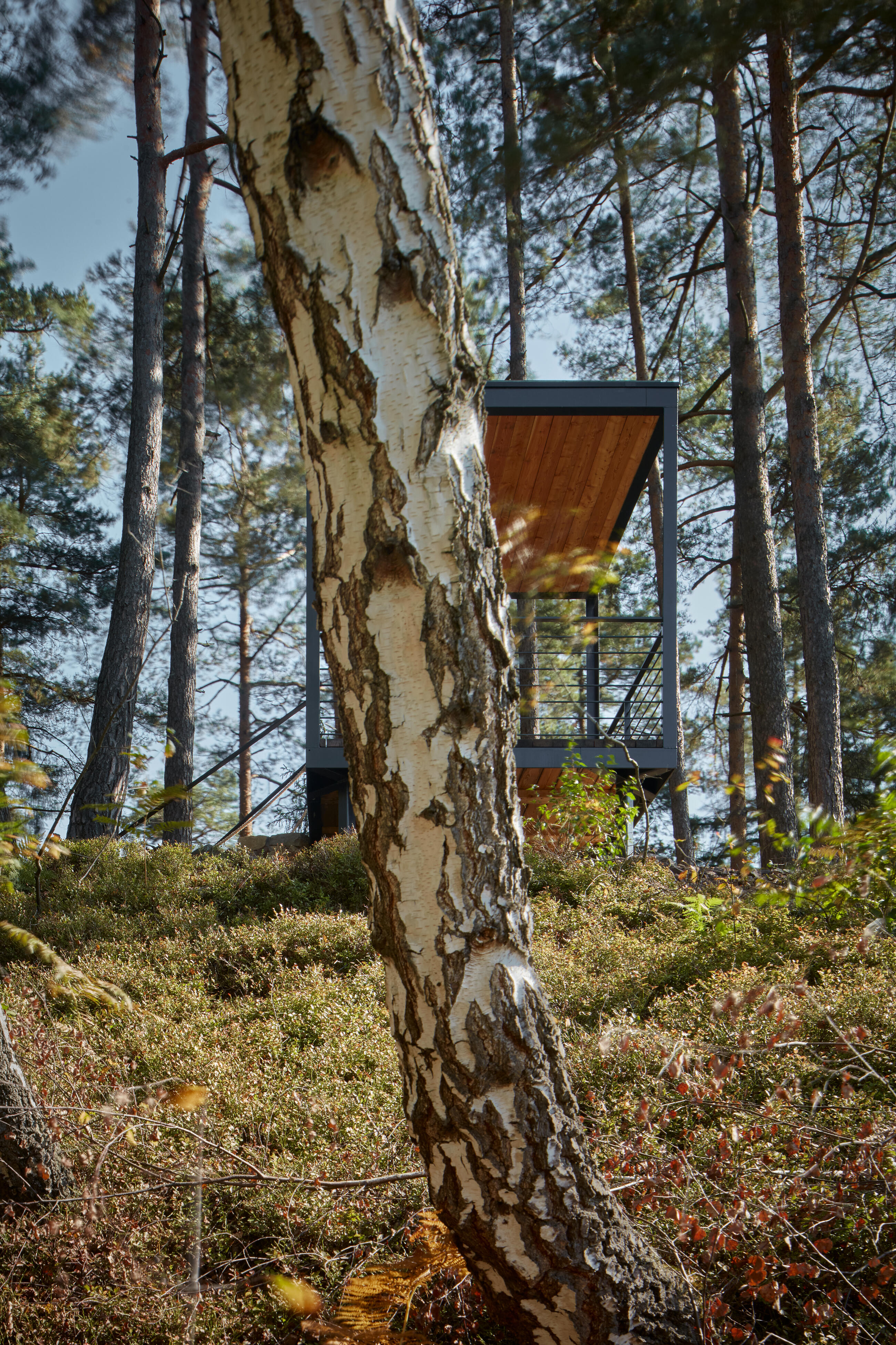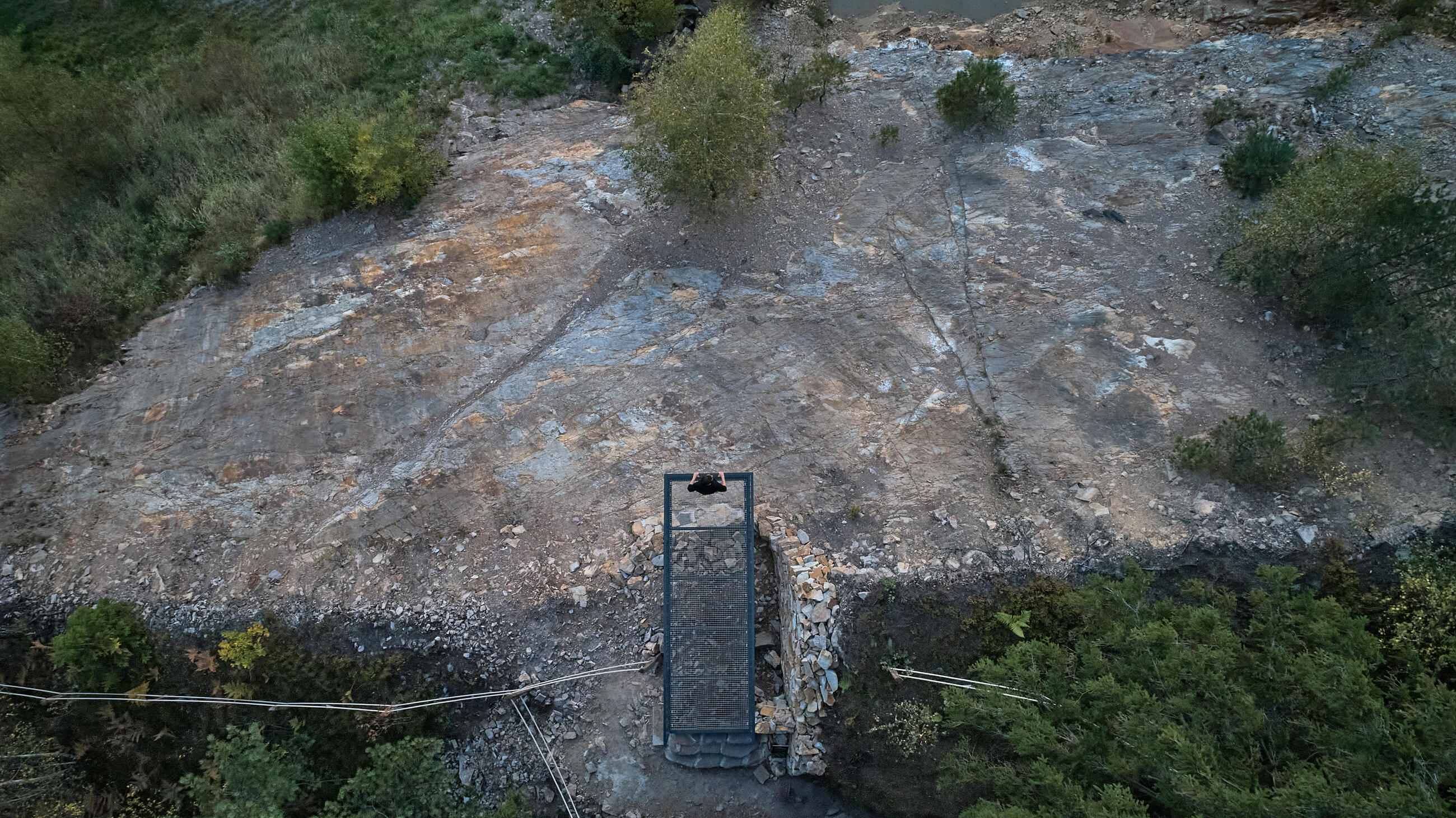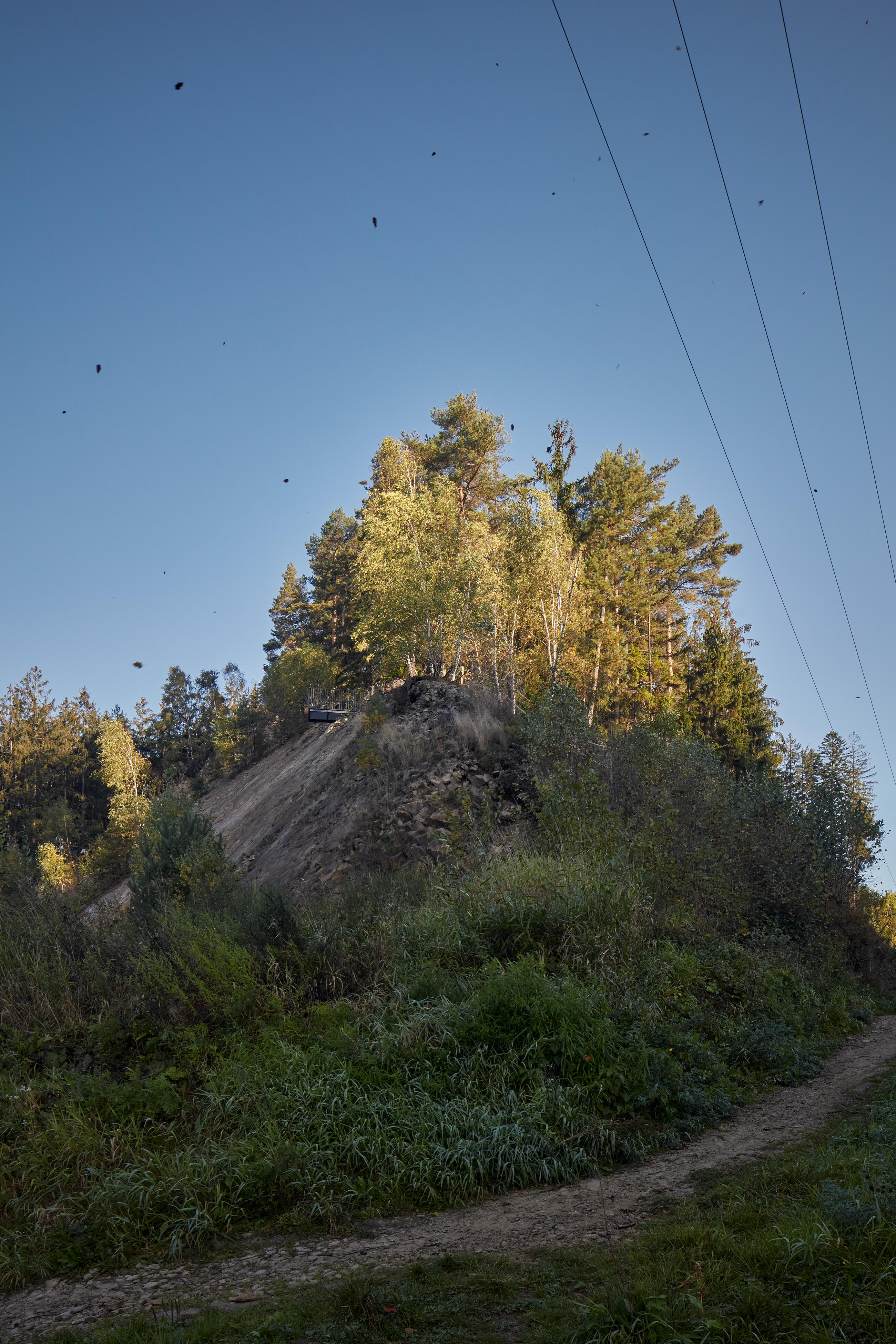 Cílem je vrcholová část kopce. Z dramatického terénu zde vyrůstají tři vyhlídkové objekty, tři subtilní prázdné krychle. Objekty jsou jemně umístěné do stávající terénní modelace mezi balvany. Terén nemají narušit. Jsou jen jakýmsi architekturou vymezeným volným prostorem, který má vybízet k zastavení a spočinutí uprostřed lesa. Hlavní vyhlídka je umístěna přímo na vrcholu a umožňuje výhled přes lomovou stěnu do okolní krajiny luk a strání. Zbylé dva vyhlídkové body jsou zamýšleny jako místa pro pobyt, zamyšlení a posezení při pohledu do interiéru lesa, na jedné straně smrkového, na druhé borového.