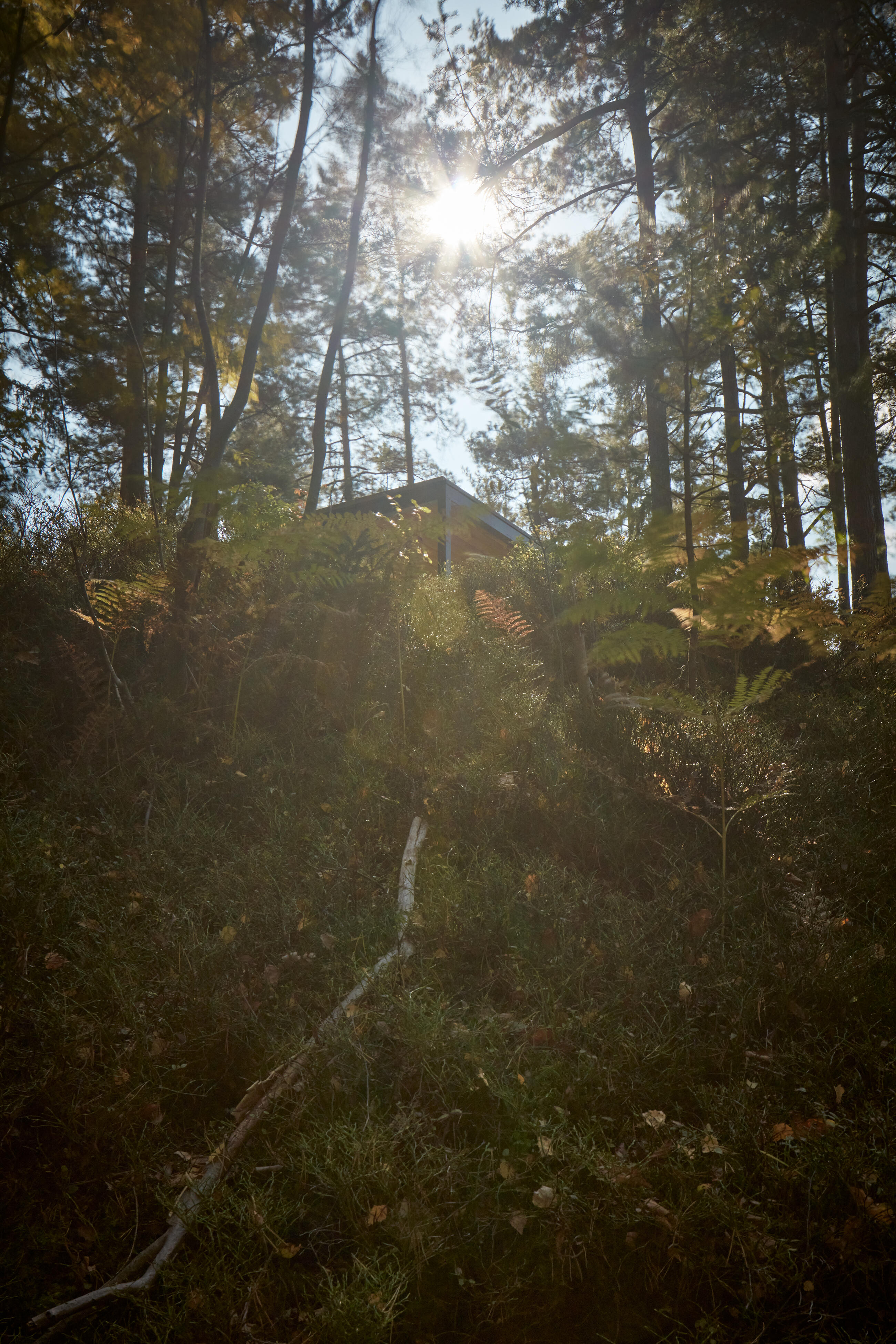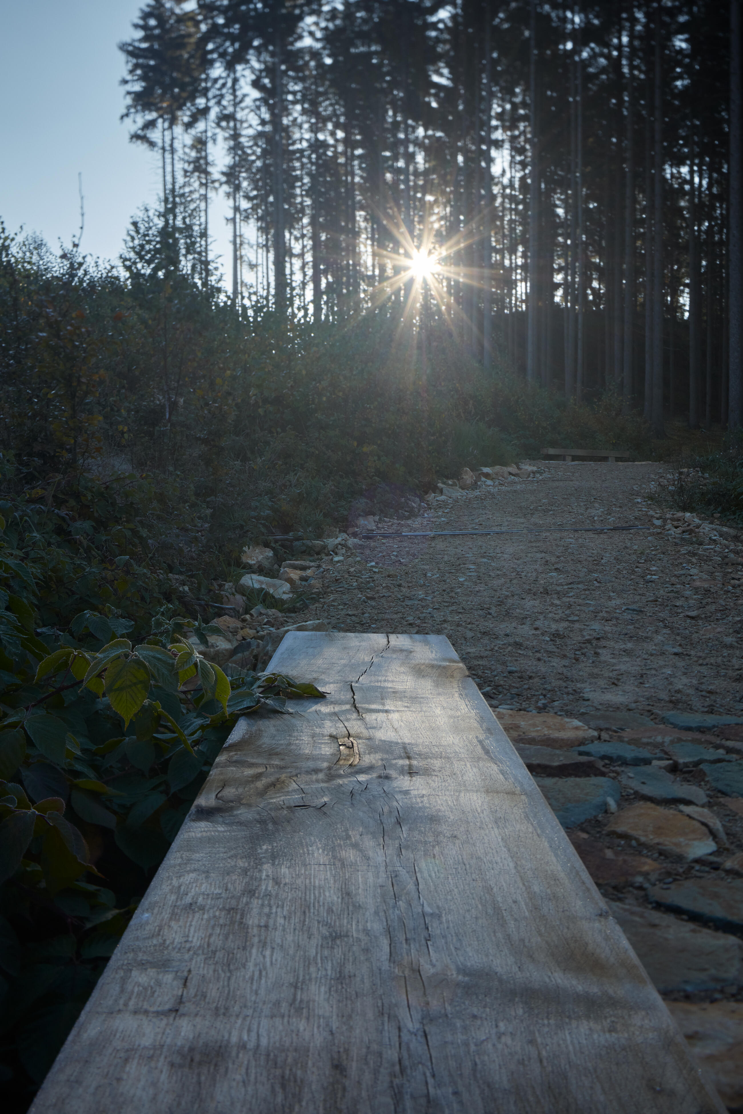 Mírnější trasa vede nově vysázeným lesem se směsicí místních druhů dřevin, které budou v budoucnu sloužit jako arboretum odkazující na blízkou okolní krajinu. V místě sedla pod skalnatým vrcholkem návštěvníci vystoupají na malou vyhlídkovou piknikovou platformu. Inspirací zde byly staré zarostlé ruiny kamenných základů rozeseté po Beskydech, dokladující osídlení a hospodaření předků v nejzapadlejších koutech krajiny. Vyhlídková plošina je vymezena od okolí nízkými suchými zídkami (základy domu), které vytvářejí rovinu mírně vyčnívající z rostlého terénu. Zídky slouží také k posezení a vyhlídce západním směrem do údolí Bečvy přes přehradní nádrž.