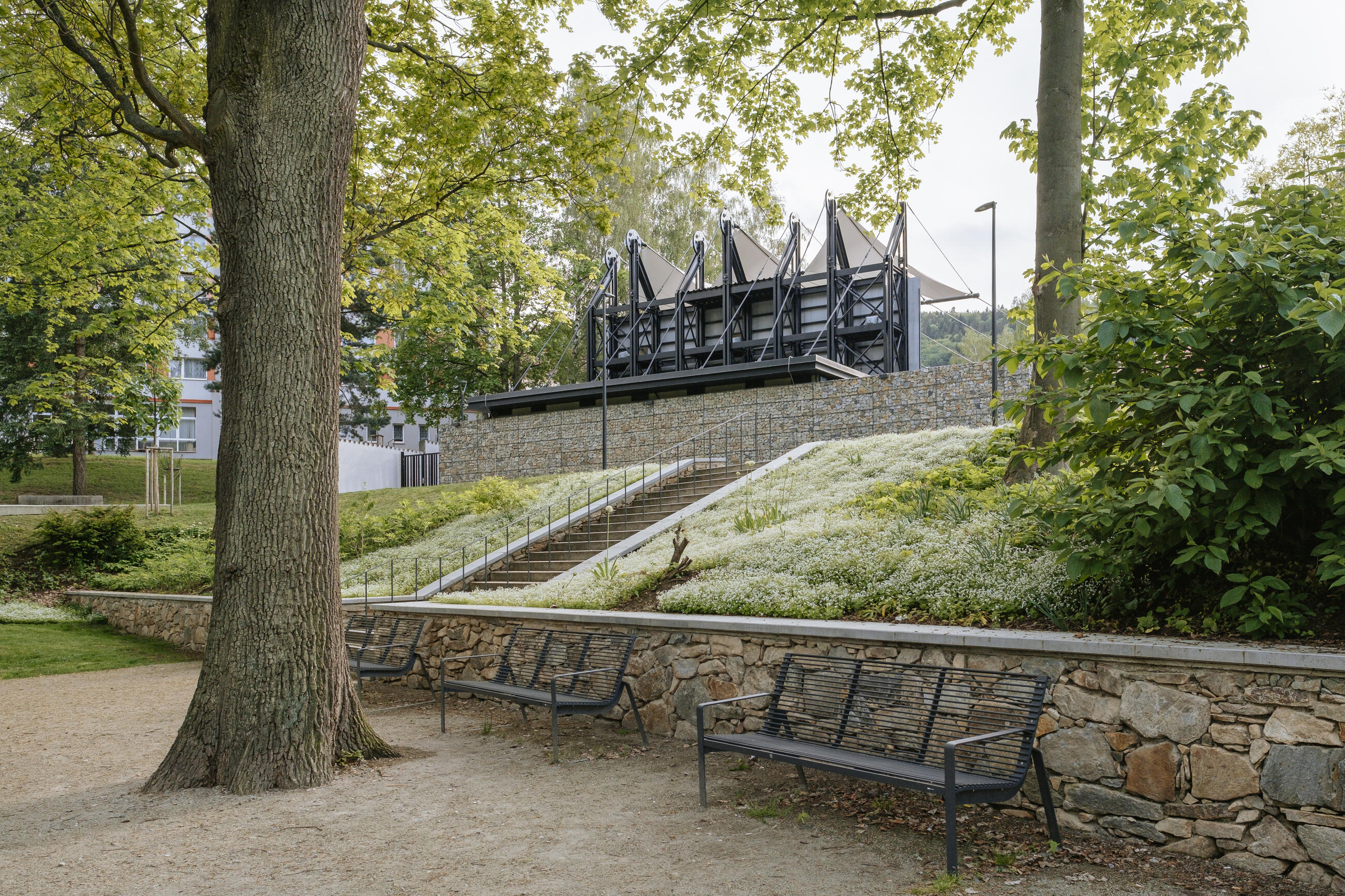Moderní část parku umožňuje pohyb po svazích a nabízí různorodé výhledy na park i město. V této části parku jsou použity moderní materiály, jako je pohledový beton, kov a dřevo, které kontrastují s historickou částí parku. Návštěvníci mohou využít rovinatý plac pro míčové hry nebo sledovat dění z vyhlídky nad svahem. Součástí je vybudování nových tras a schodišť, které vytváří tolik chybějící pěší propojení.