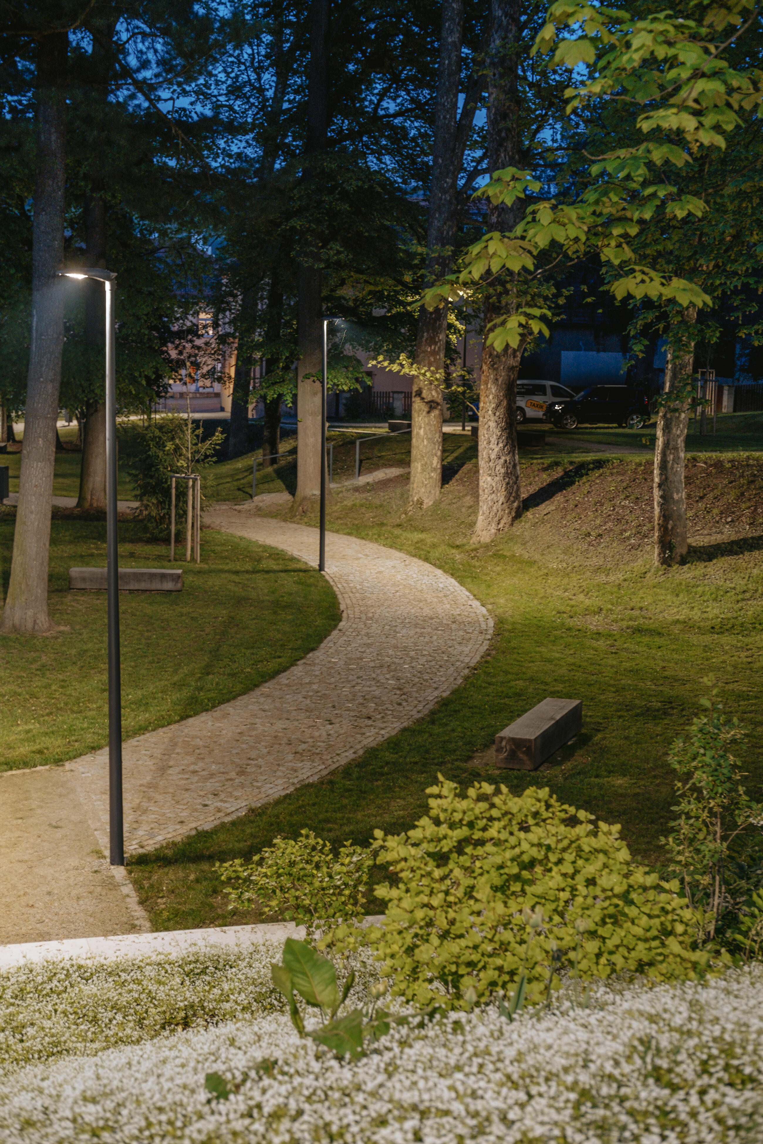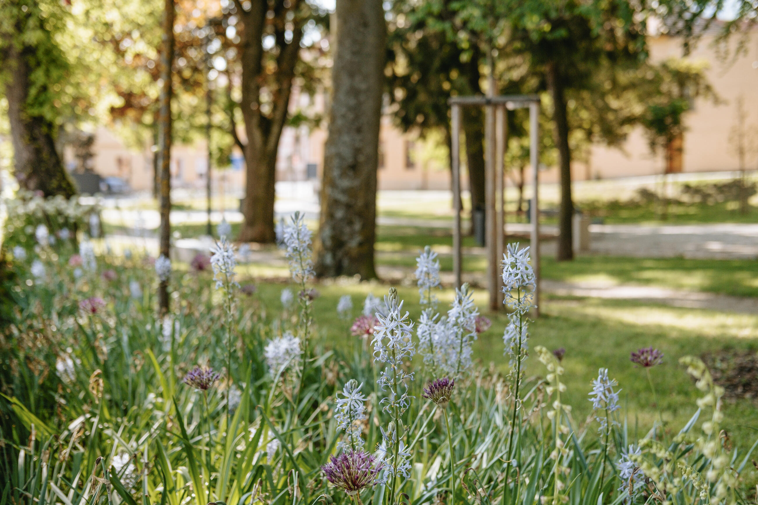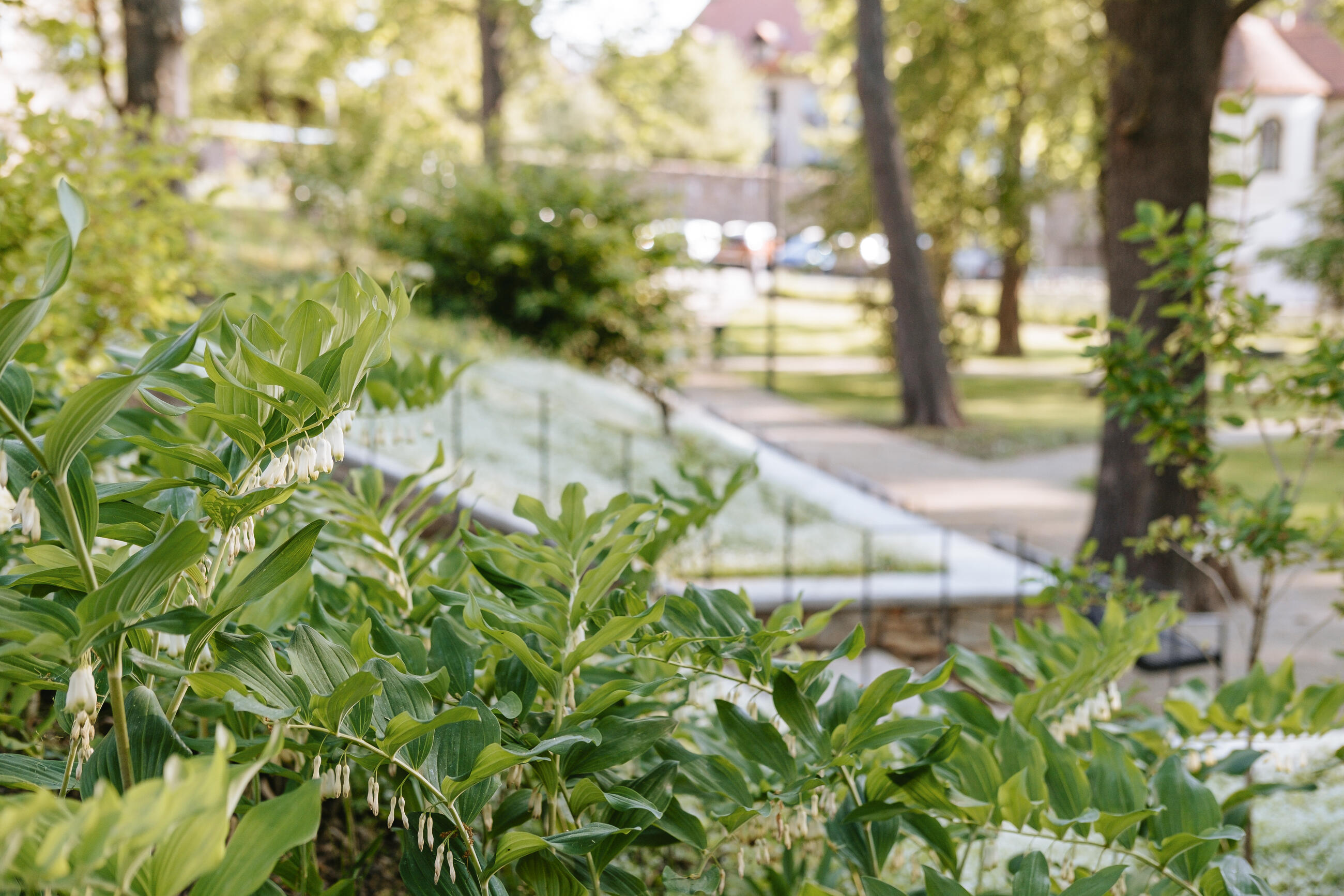 Podstatnou součástí návrhu je respekt ke stromům rostoucím na ploše parku, dobudování kosterní vegetace, zastavení jejího rozpadu a komponované obohacení parku dřevinami s rozličnou texturou a habitem. Pod stromy jsou vysázeny keře a byliny, ve svazích půdopokryvné rostliny a na slunných místech květinové záhony. Zjednodušením sítě zpevněných ploch dochází ke zlepšení ekologických podmínek nezbytných pro jejich vývoj.