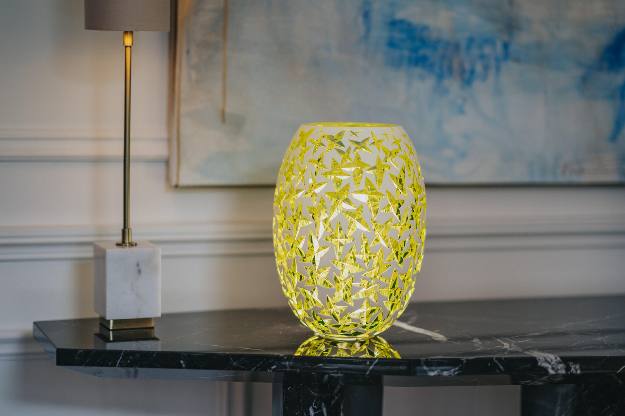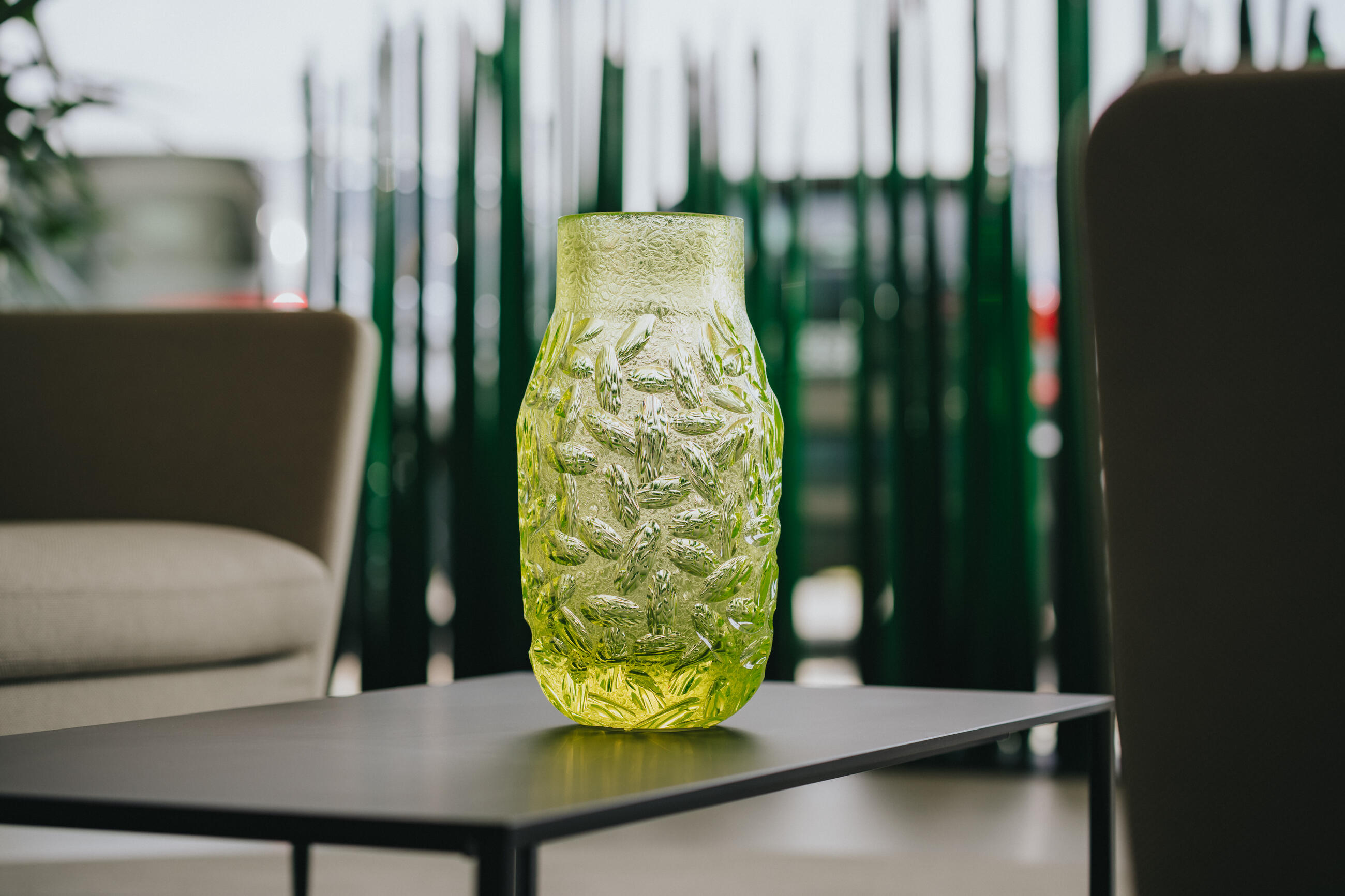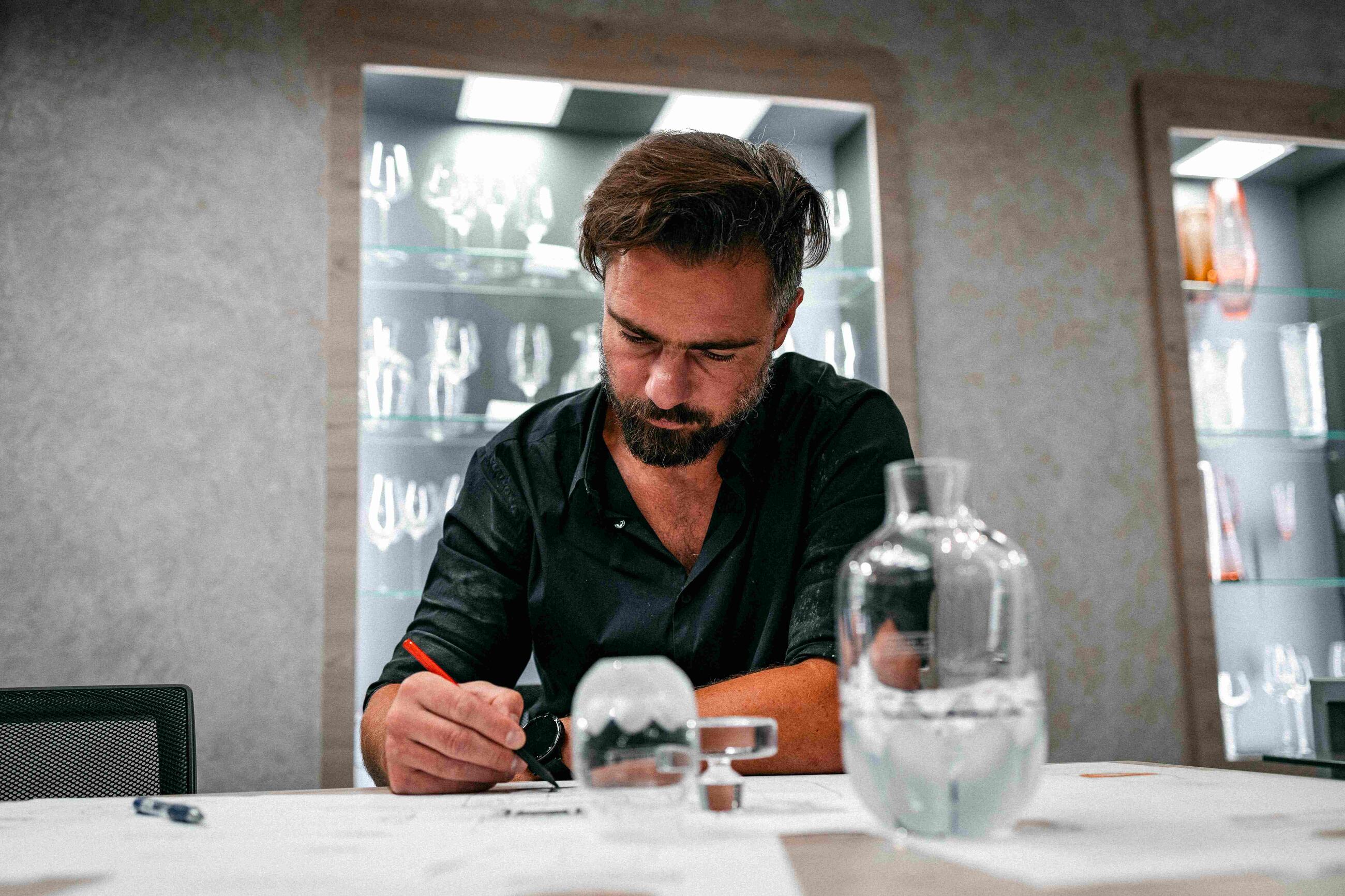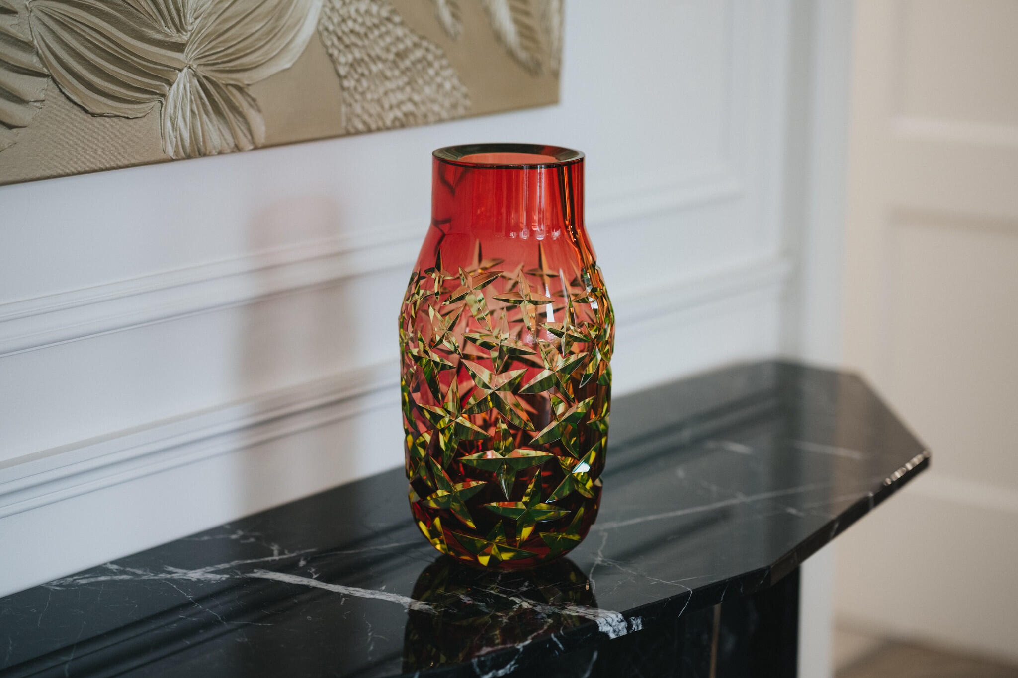 Jabůrek’s artistry has been recognized with numerous national and international awards, including the Czech Grand Design Public Choice Award in 2012. In his studio and workshop, he designs both handcrafted and machine-made pieces, creating bespoke awards, trophies, and gifts. Collaborating with architects and interior designers, he develops unique collections while also producing his own original decorative and drinkware glass. By personally hand-cutting limited editions of his works, he ensures that every piece emerges as a true masterpiece.