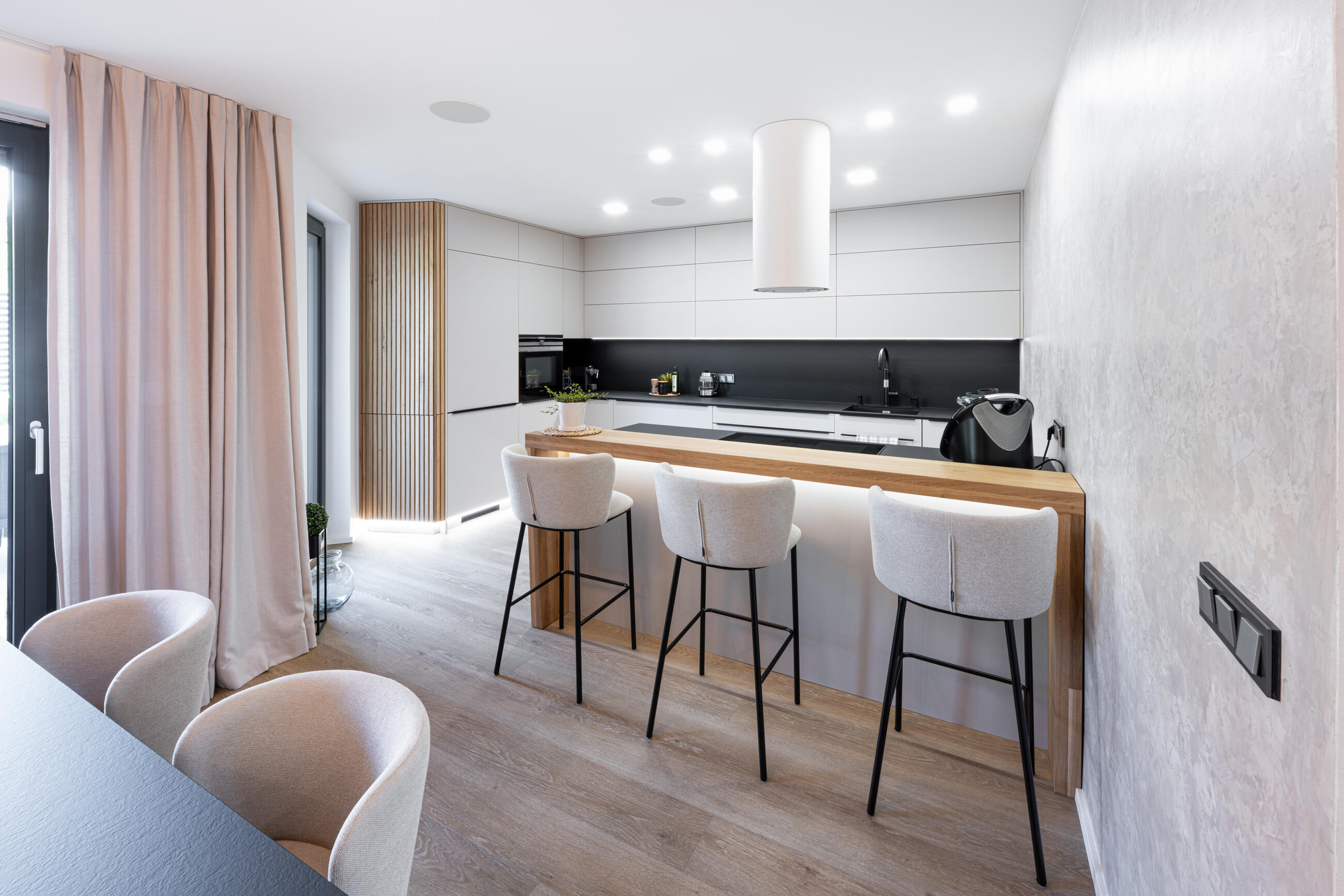 – Využíváme přírodní dýhy a masivní dřevo, které dodávají interiérům nadčasový design a jedinečný charakter.