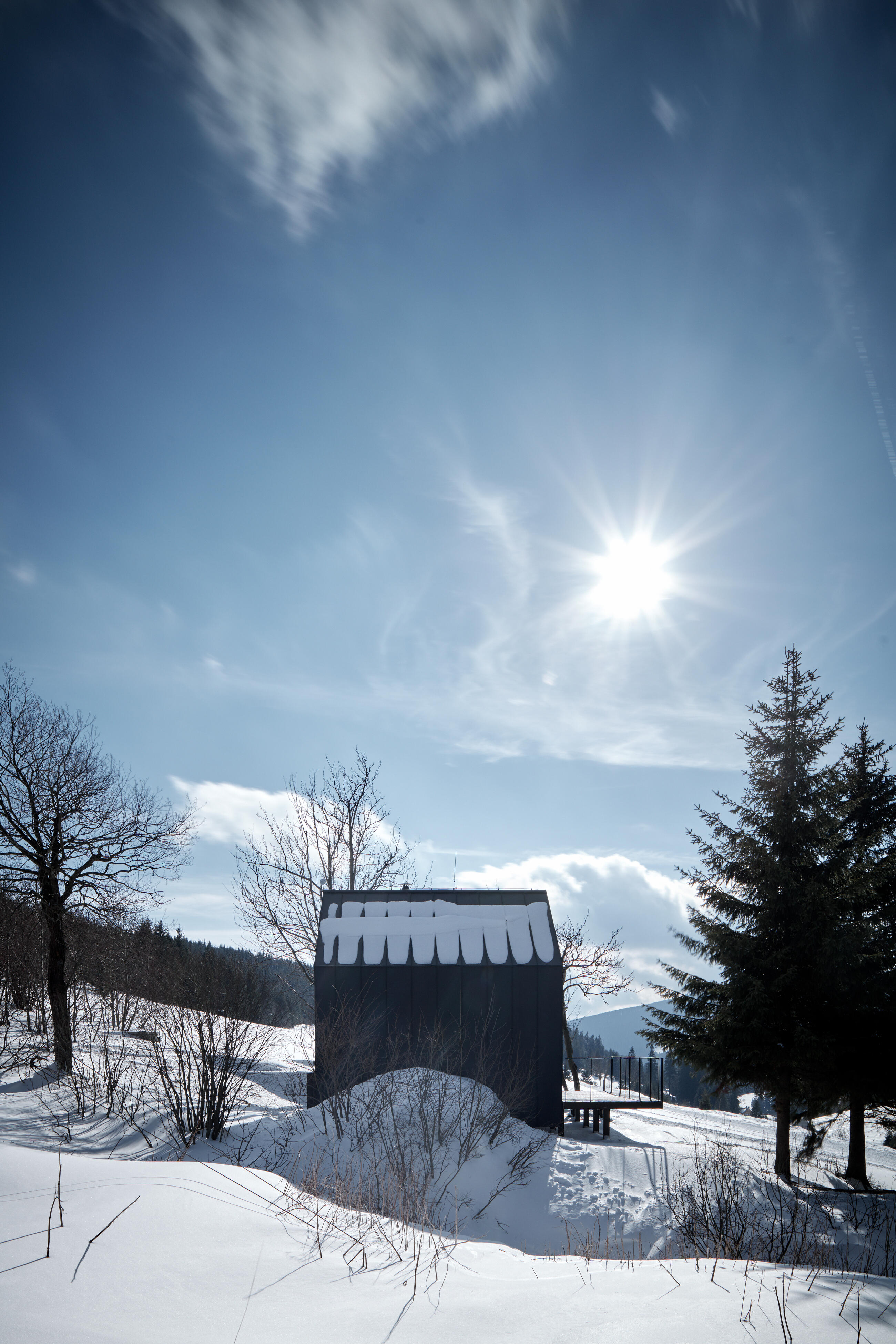 The original lower ski-lift station was replaced with a new wooden structure on the confluence of Kolben and Černá Voda streams, the latter of which the chalet is named after. The owner’s wish was to have a small structure to serve as a lodge for short-term guests of the owner of the nearby Tereza mountain chalet.