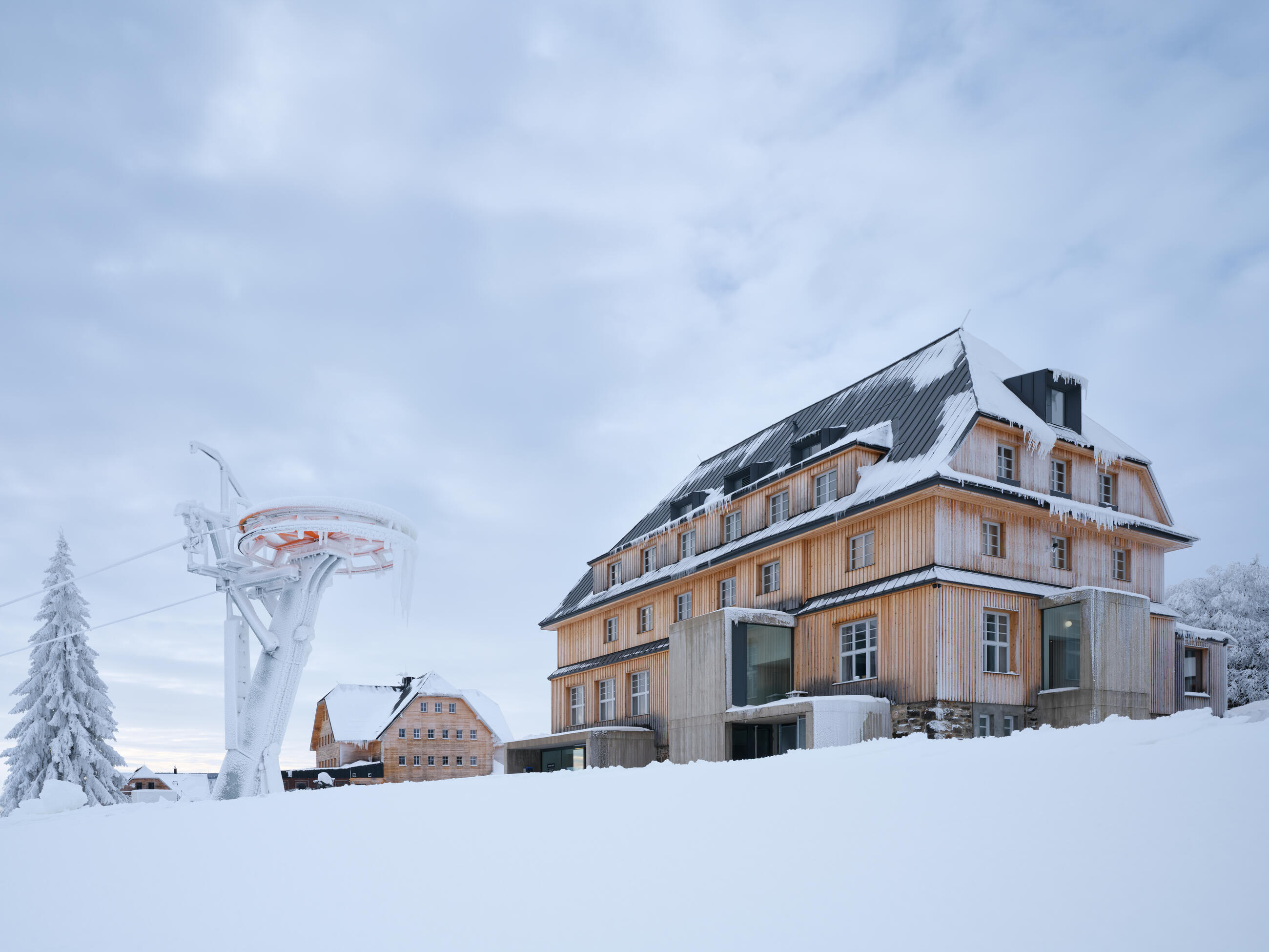 Malá Úpa is a mountain village scattered along the ridges of the Krkonoše Mountains, near the highest Czech peak, Sněžka. Known for its distinctive charm, the area ranks among the country’s most popular mountain destinations year-round. The village comprises several parts, and one of its most significant — Pomezní Boudy in Horní Malá Úpa — is home to the new Hořec Centre. For several decades, numerous buildings in this area have been designed by the architectural studio ADR in collaboration with the local SKIMU ski resort team, united by a shared ambition to preserve the unique atmosphere and character of this mountain landscape.