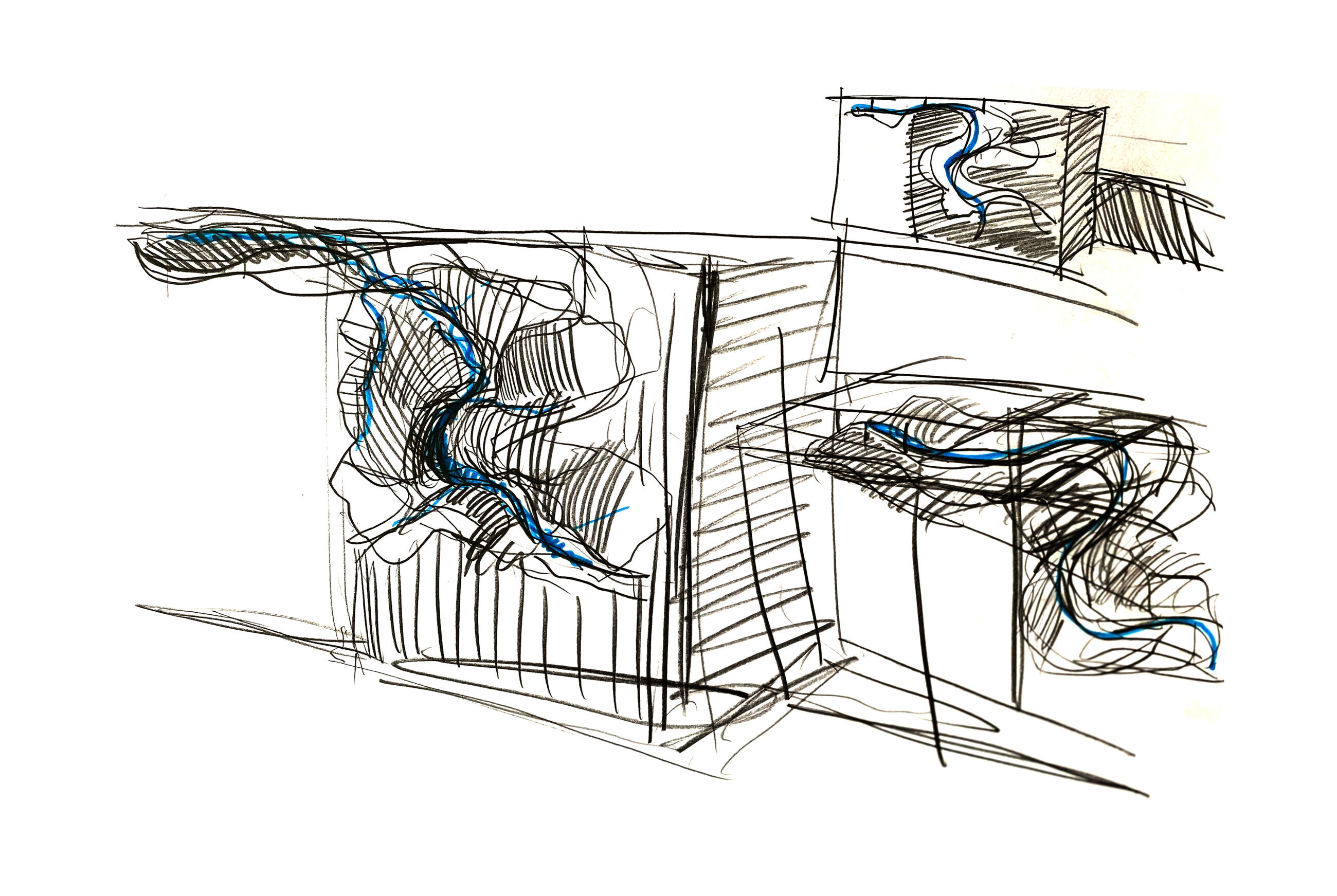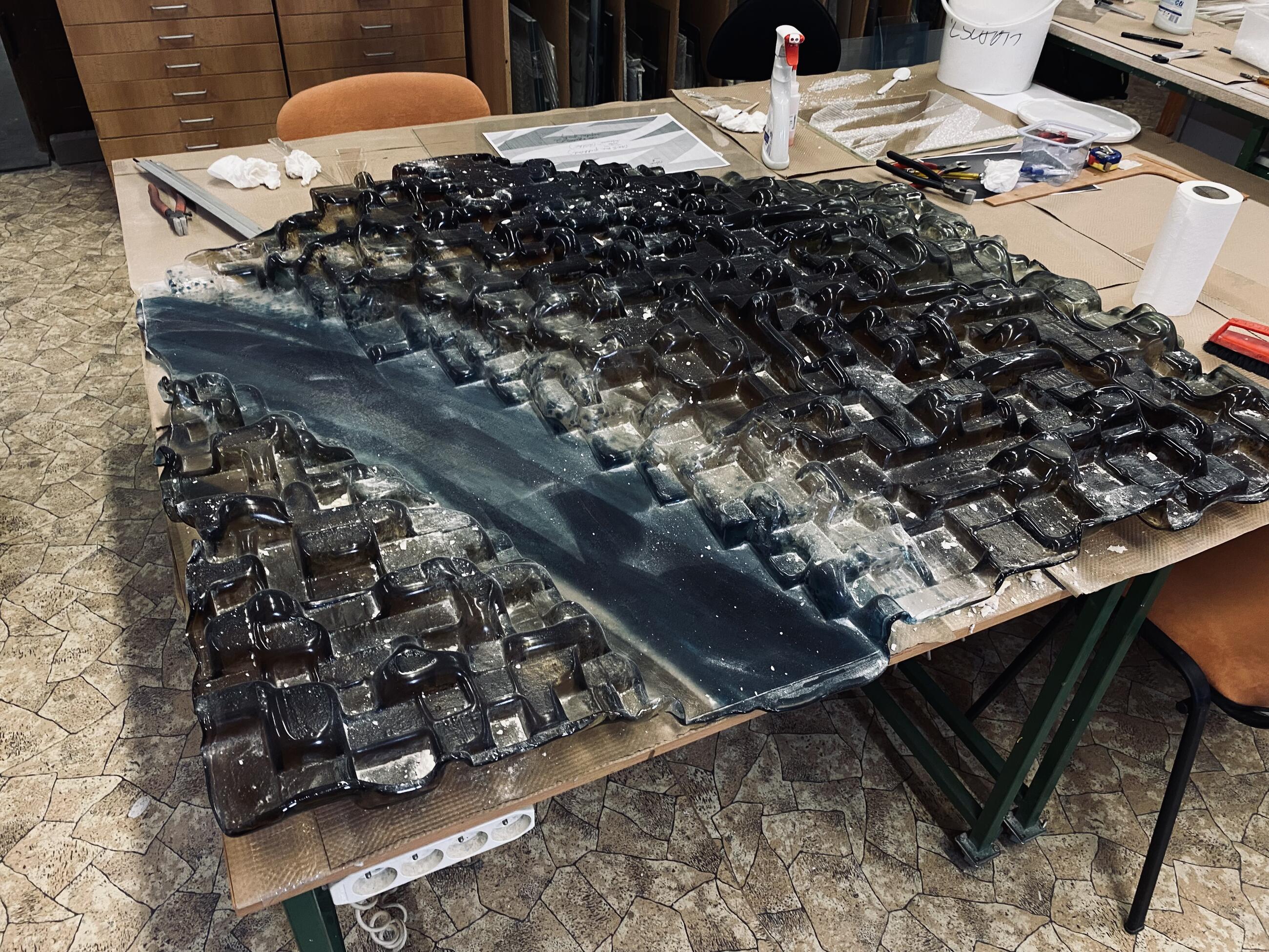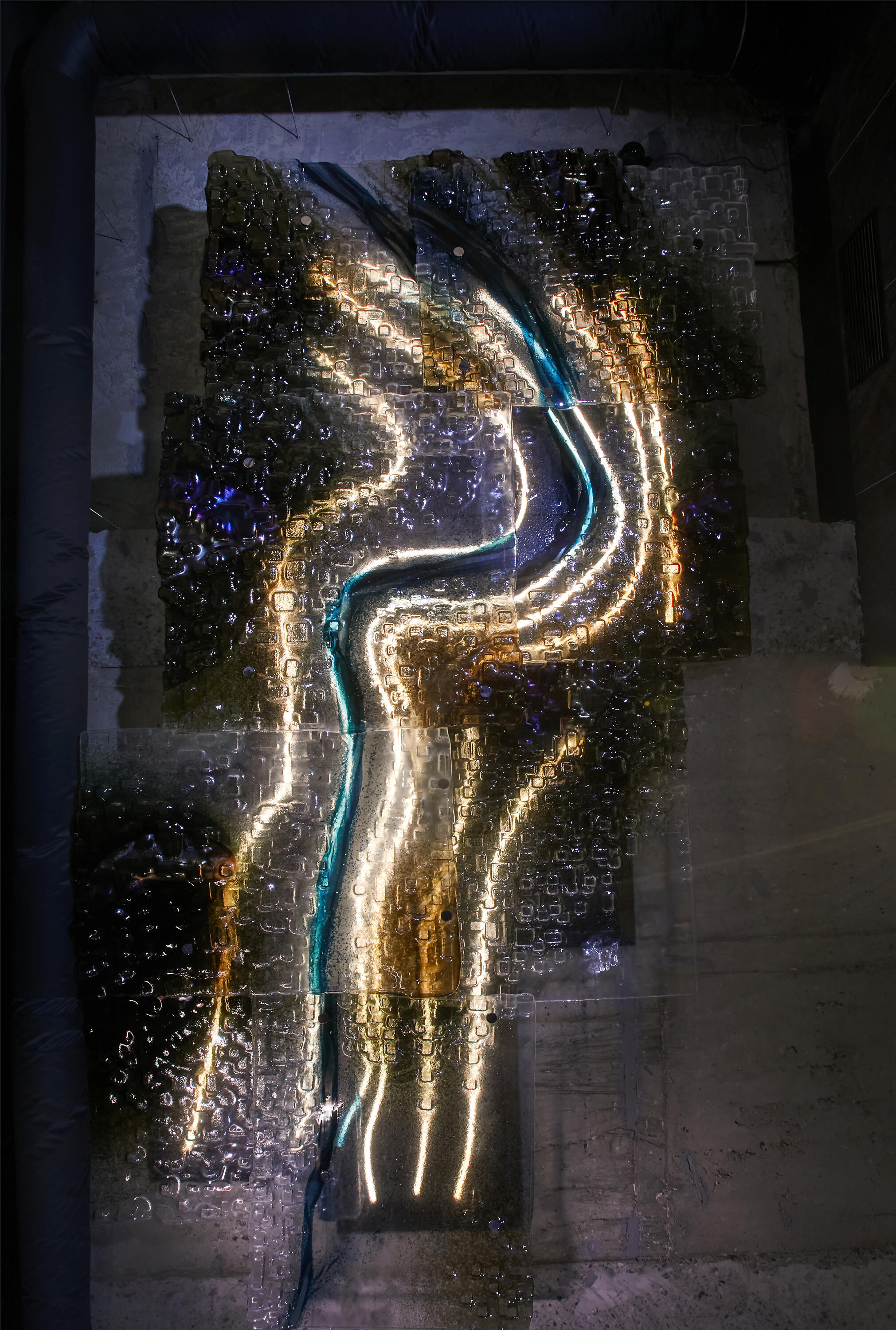 Matěj considers geology and topography powerful sculptural themes. “A river shapes the landscape while simultaneously revealing its layers—and it was precisely this making the invisible visible that became my main motif.” Translating this vision into a glass relief, however, required a series of demanding experiments.