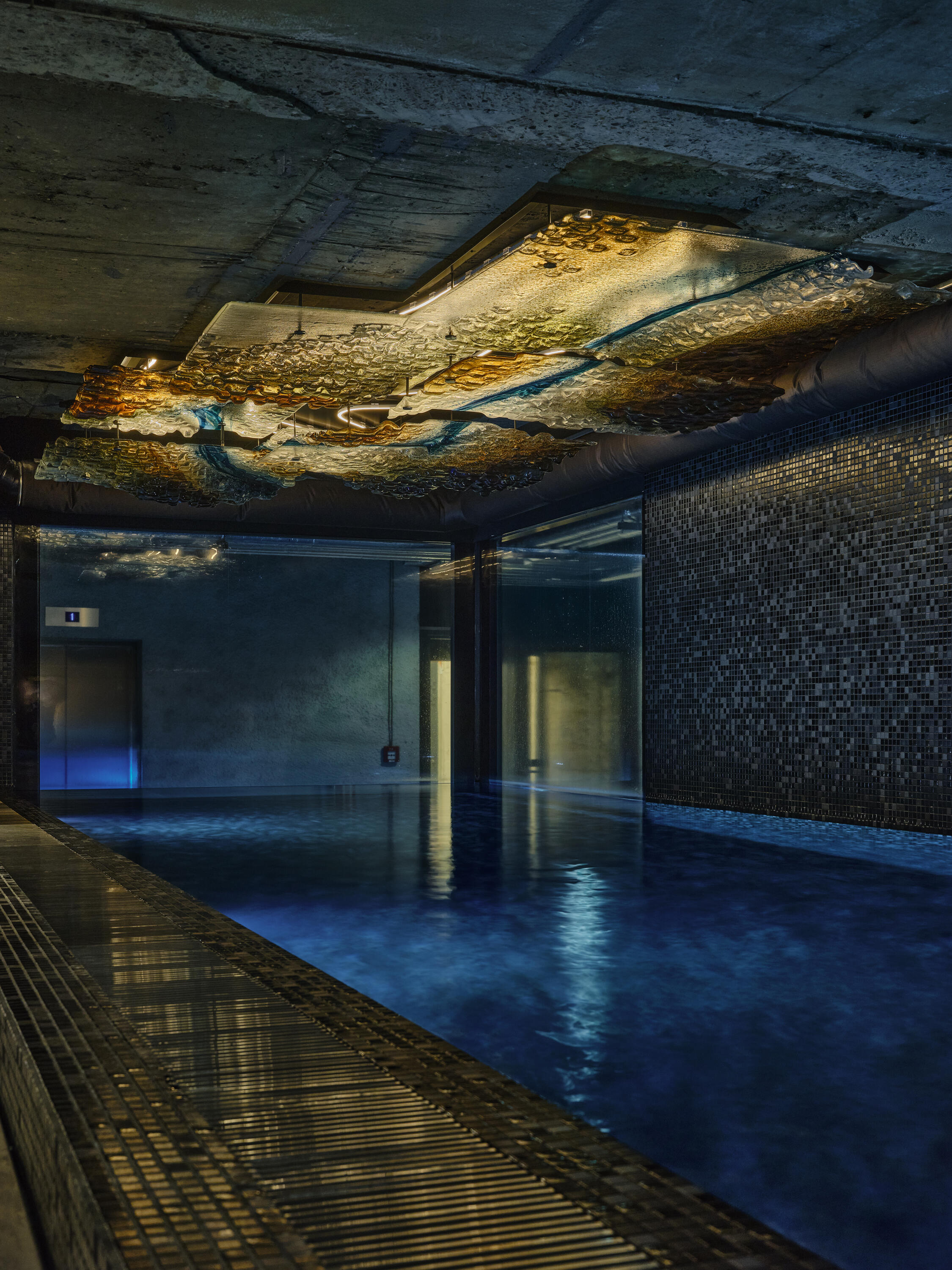 “Better a broken arm than a broken spirit” is the motto of sculptor Matěj Hájek and his SKULL studio. Stepping outside the comfort zone is Matěj’s creative drive—whether through critical interventions by the Ztohoven collective (and beyond), the design of children’s playgrounds to which he even devoted his dissertation, or the realization of technically demanding art objects. Adventures at the edge of what is possible also marked the creation of the glass sculpture Meander, suspended above the pool of the Vanguard Residence.