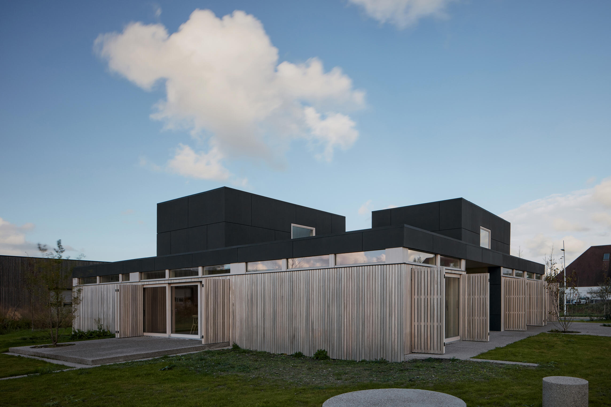 Architects Martin Mikovčák (*1992 in Čadca, completion of studies in 2017 at FA STU, in 2019 at VŠVU) and Michiel De Backer (*1991 in Bruges) began their cooperation at the KU Leuven´s Faculty of Architecture in Ghent. In 2015, they jointly established an atelier and a workshop for modular buildings called Ark-shelter and built their first prototype. "The construction of models has grown to a scale of 1:1, which allows us to be in control up to the final handover of the project." Since then, Ark-shelter has realized around 300 different modules scattered all over Europe. They have also been awarded with: Student Entrepreneur of the year 2016 UNIZO Belgium, Birdhouse scale up competition 2017, CE ZA AR 2019, RED DOT design award 2020, BIG SEE architecture award 2022, and others together with Viktor Mikovčák (*1997 in Čadca, completion of studies in 2021 at FA STU), who has been continuously involved in the cooperation. Currently, Viktor alternatively figures in both Ark-shelter and in his atelier Archekta, with its very own tradition that stretches back to 1991, when founded by Stanislav Mikovčák (his father). Nowadays, all three of them, Martin, Michiel, and Viktor, together with their team design and implement with the Ark-shelter modular system different buildings for various uses, from recreational shelters in forests and floating restaurants to administrative or community centers composed of several modules. What they try to present is the modular architecture in the position of a tool capable of respecting both the genius loci of the place and the essence of the biological-sensory experience of the space by the users.