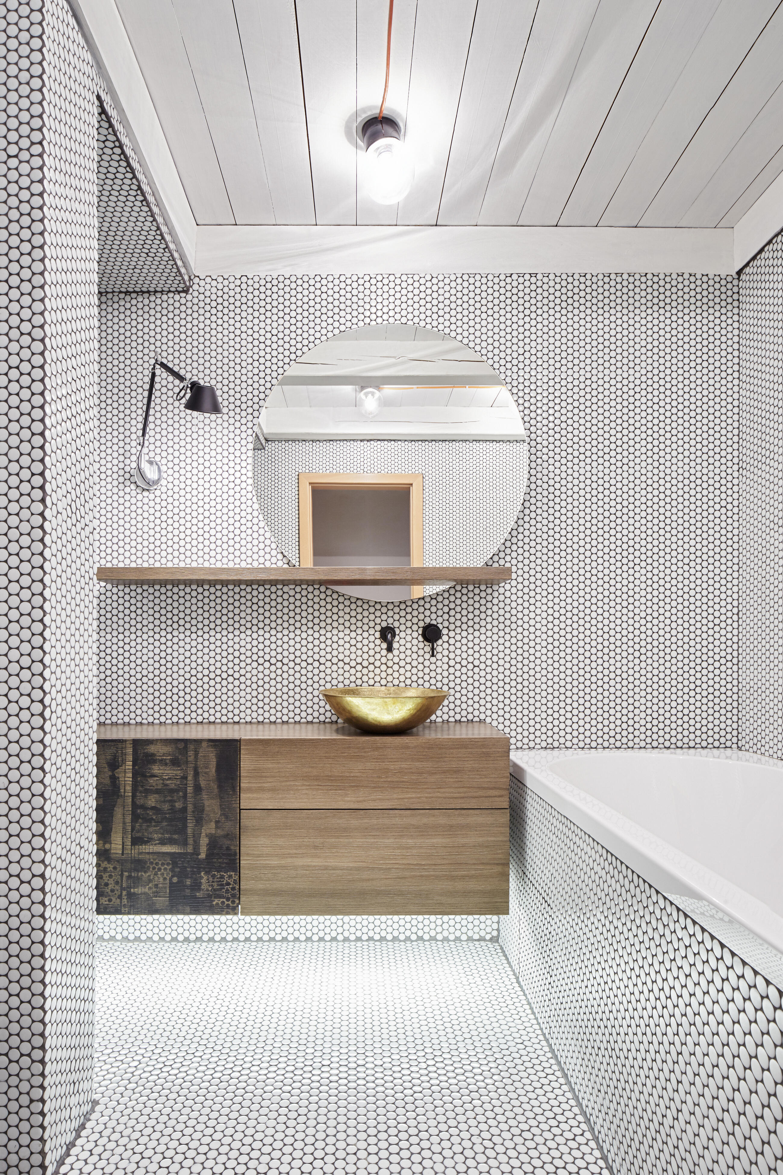 The project of two little bathrooms and a kitchen of a maisonnette flat in Prague Vinohrady entrusted a young couple to the architect Dagmar Štěpánová.
