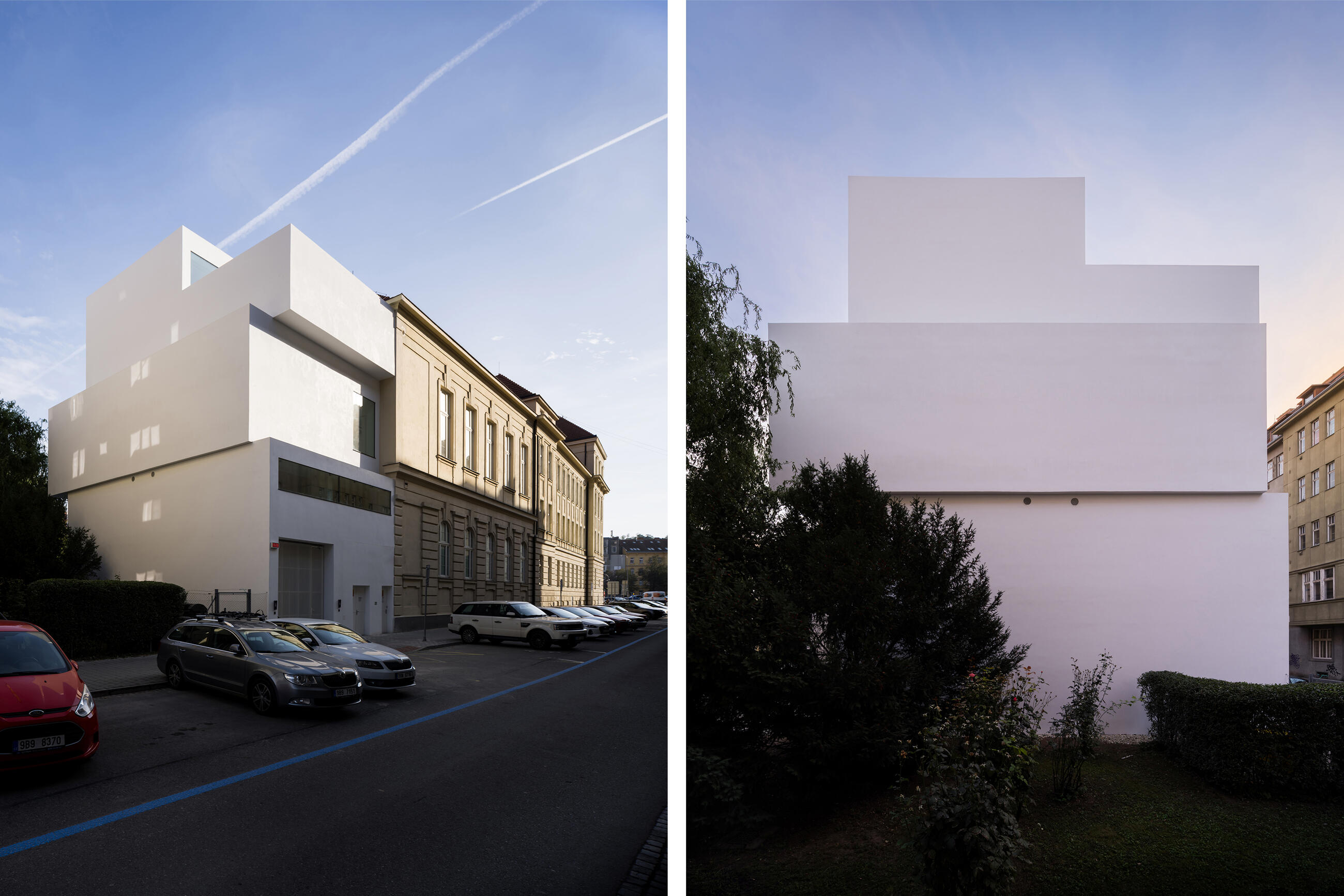 The popular art education program of the Faculty of Education at Masaryk University in Brno previously lacked quality teaching facilities, with art students having to share spaces with other disciplines. In response, the faculty commissioned us to design a new studio extension. This project has provided art teachers of the future with inspiring spaces not only for traditional art disciplines but also for new media. The extension includes workshops equipped for cutting, drilling or welding, a painting studio with excellent natural light, and a high-ceilinged multimedia studio on the top floor that can be fully blacked out and used as a white/black box with adjustable color backlighting. All rooms are brightly lit and entirely painted white, creating a spacious and fresh environment that fosters creativity and focus.