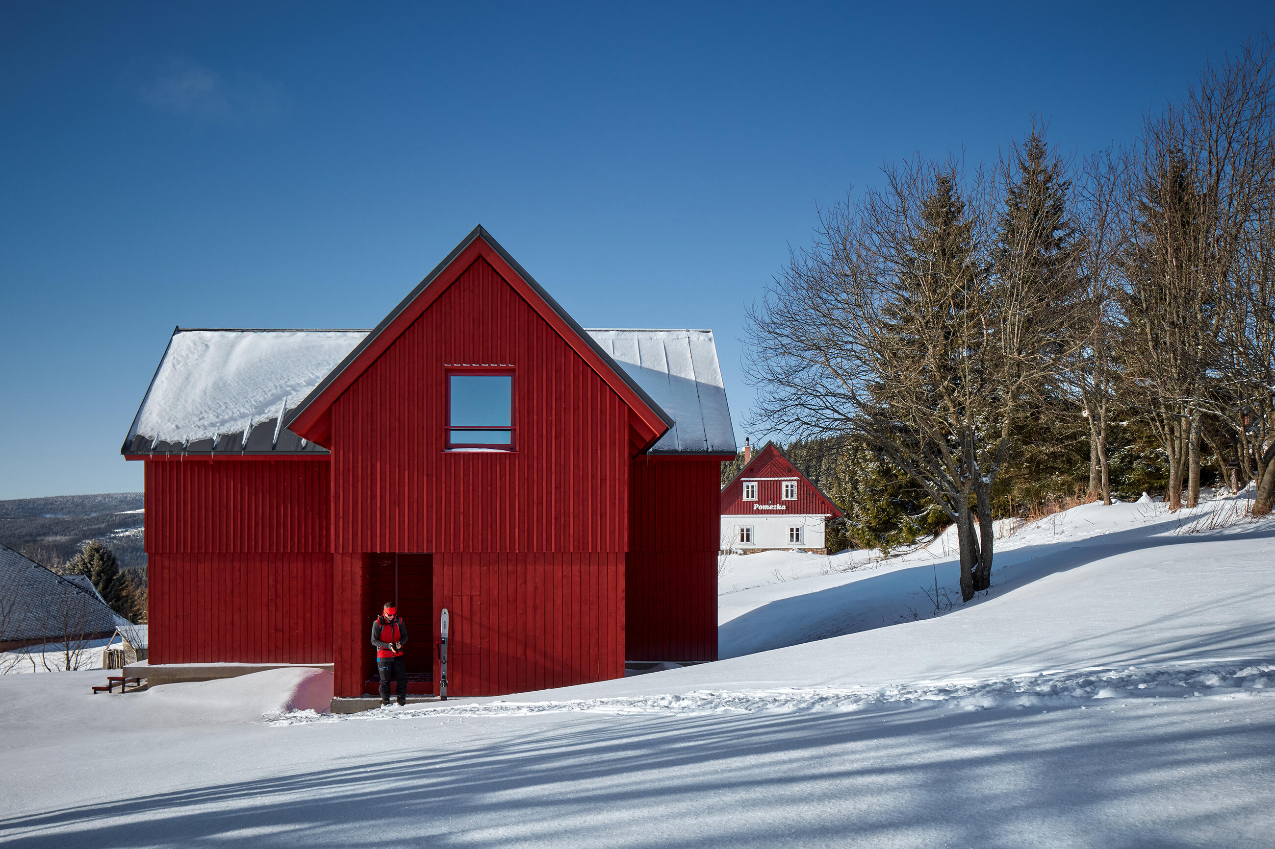 The client’s brief was to design a functional, compact building for the manager of a ski resort within the built-up area of the Horní Malá Úpa village.