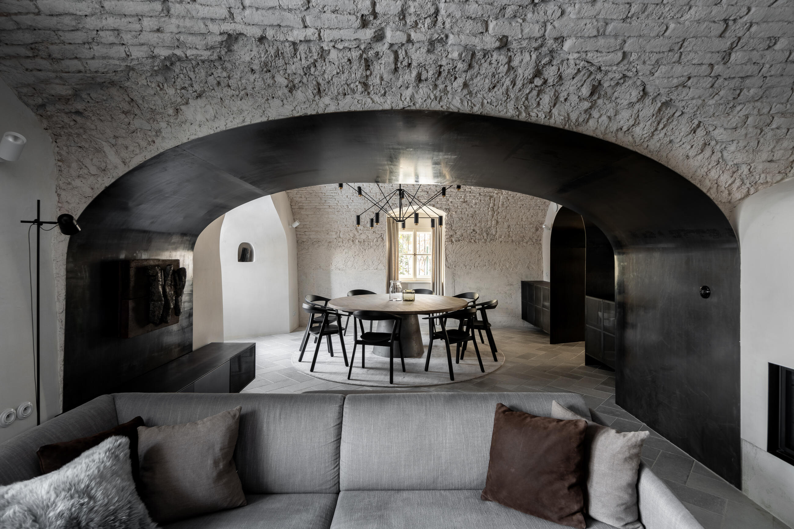 Realization of Hradby ranks among our most popular reconstructions. The object itself was interesting. Fortification guard house with a history dating back to the Middle Ages, vaulted ceilings on the ground floor, wooden painted ceilings on the first floor, original tiled stove. Enlightened clients, who approached the reconstruction very carefully and responsibly, were an absolutely essential ingredient of this realization. The goal was to restore as many elements as possible and to complement the entire space sensitively with a modern interior.