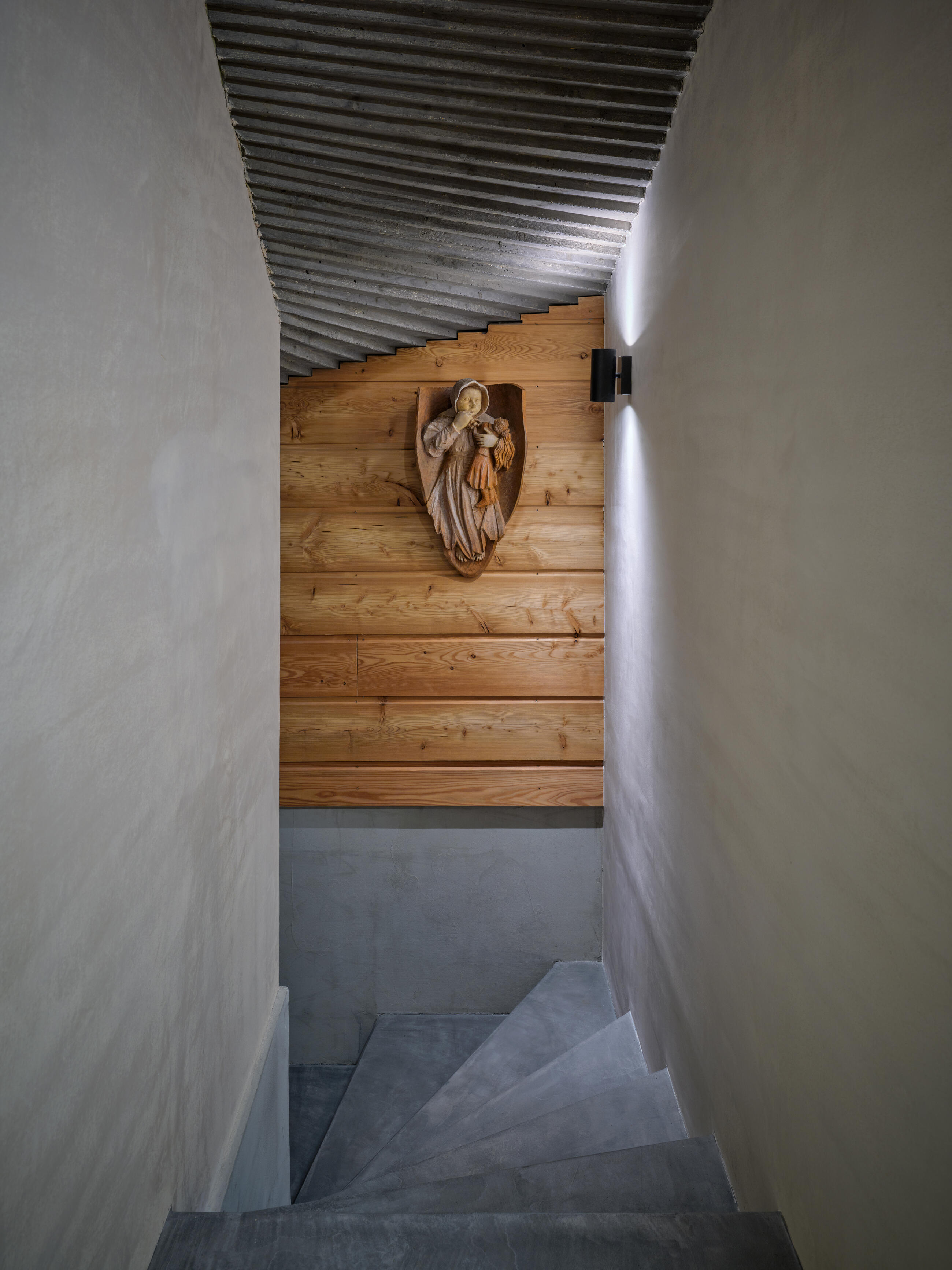 The basement is accessed from the entryway. This area includes wellness, sauna, technical and storage rooms. Because of the sloping terrain, the wellness area is naturally illuminated under the terrace.