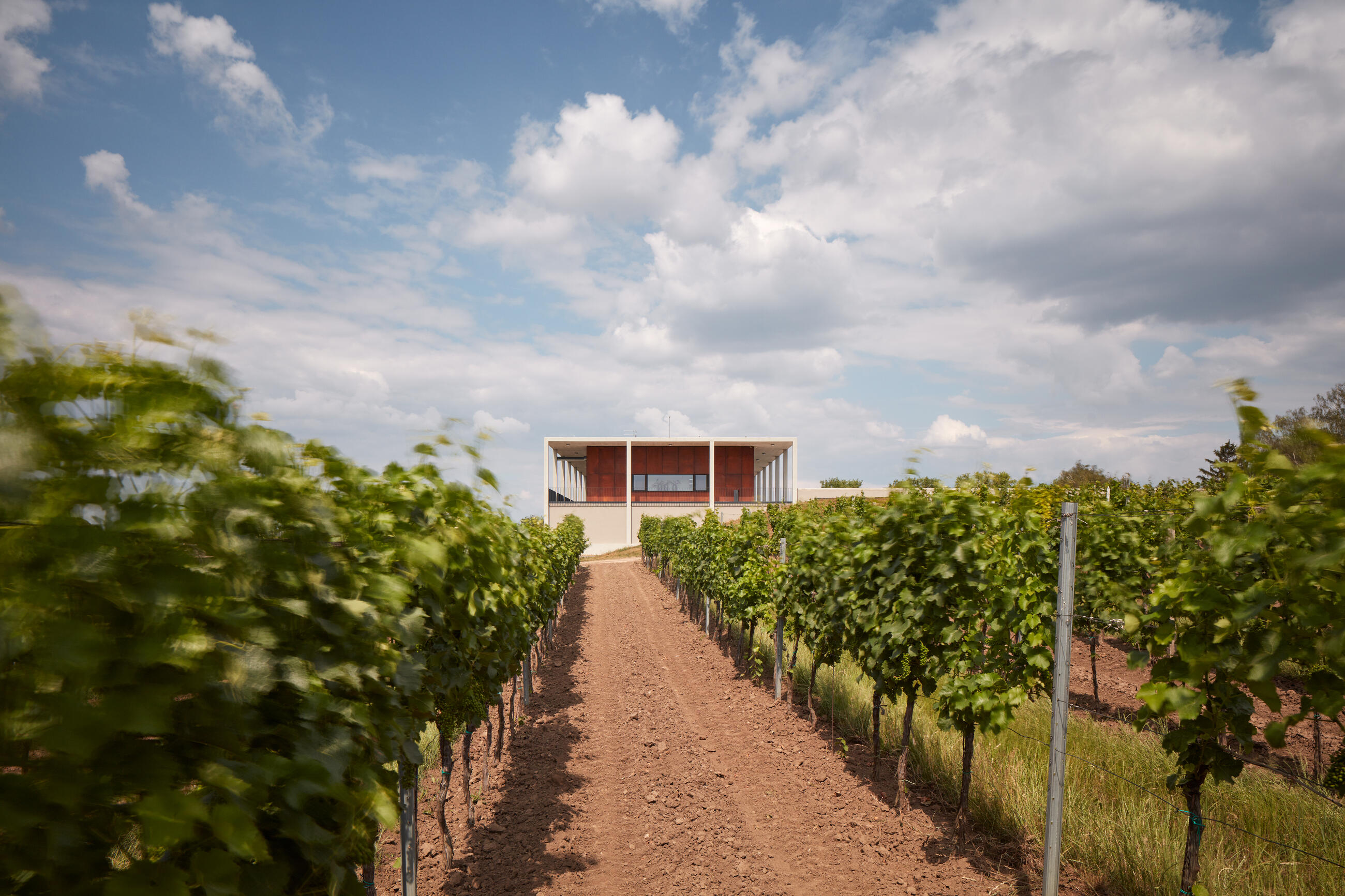 The design of the winery draws on the traditions and sources of inspiration similar to the ones of the Romantic buildings of the Lednice–Valtice Cultural Landscape. In our case, it was inspired by the image of a classical temple, which was then transformed into an abstract form of a slab supported by three rows of columns – a pavilion standing on a solid plinth. This pavilion gently complements the green horizon and vineyards.