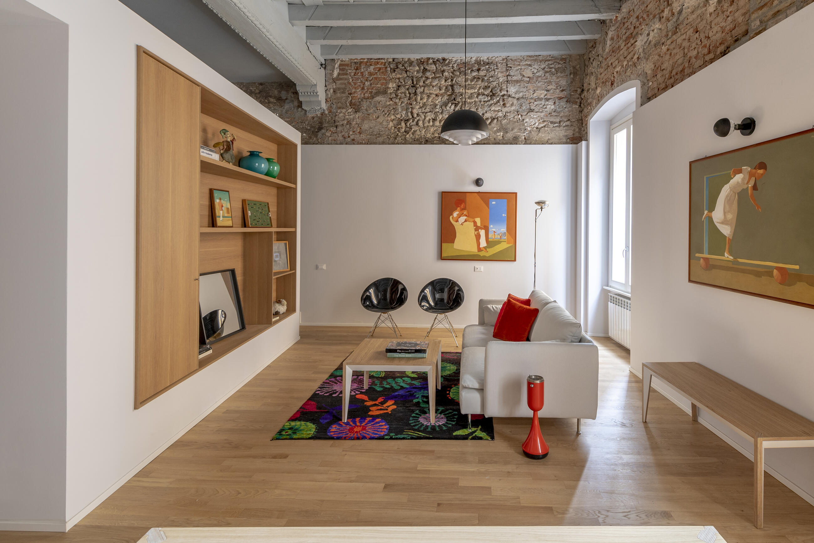 This gut renovation opens up and modernizes the interiors of two apartments in a dilapidated historic Palazzo in Brescia, Italy, while restoring the original grandeur of the spaces. Interestingly, the units are positioned on subsequent floors, sharing, as it were, the same perimeter outline. By virtue of their different ceiling heights, however, they engender discrete architectural responses. On the second floor, the Piano Nobile Loft expands vertically, taking advantage of the 4.4-meter high ceiling. The Round Wall Studio, on the third floor, develops horizontally with a series of partial-height partitions.