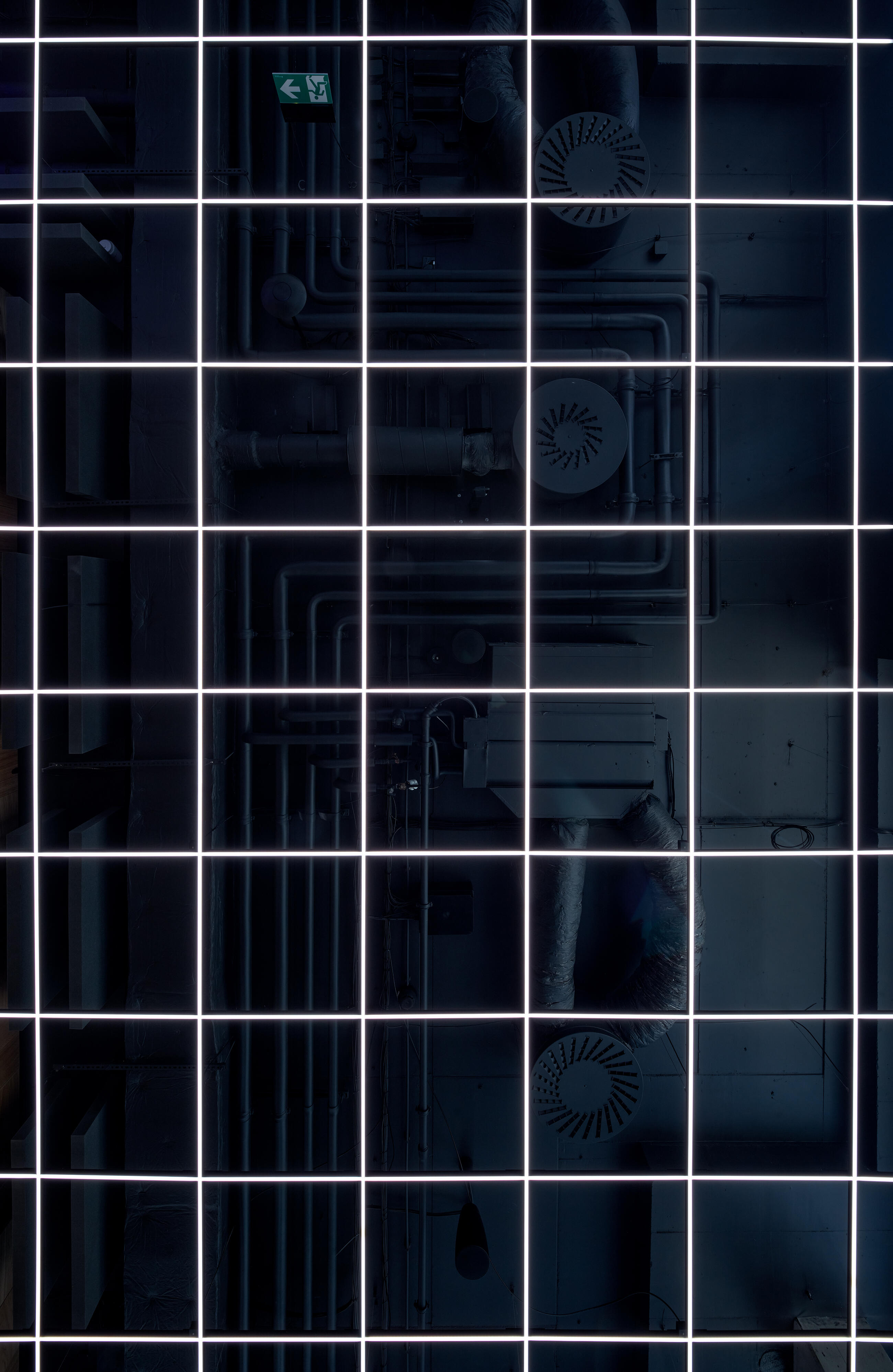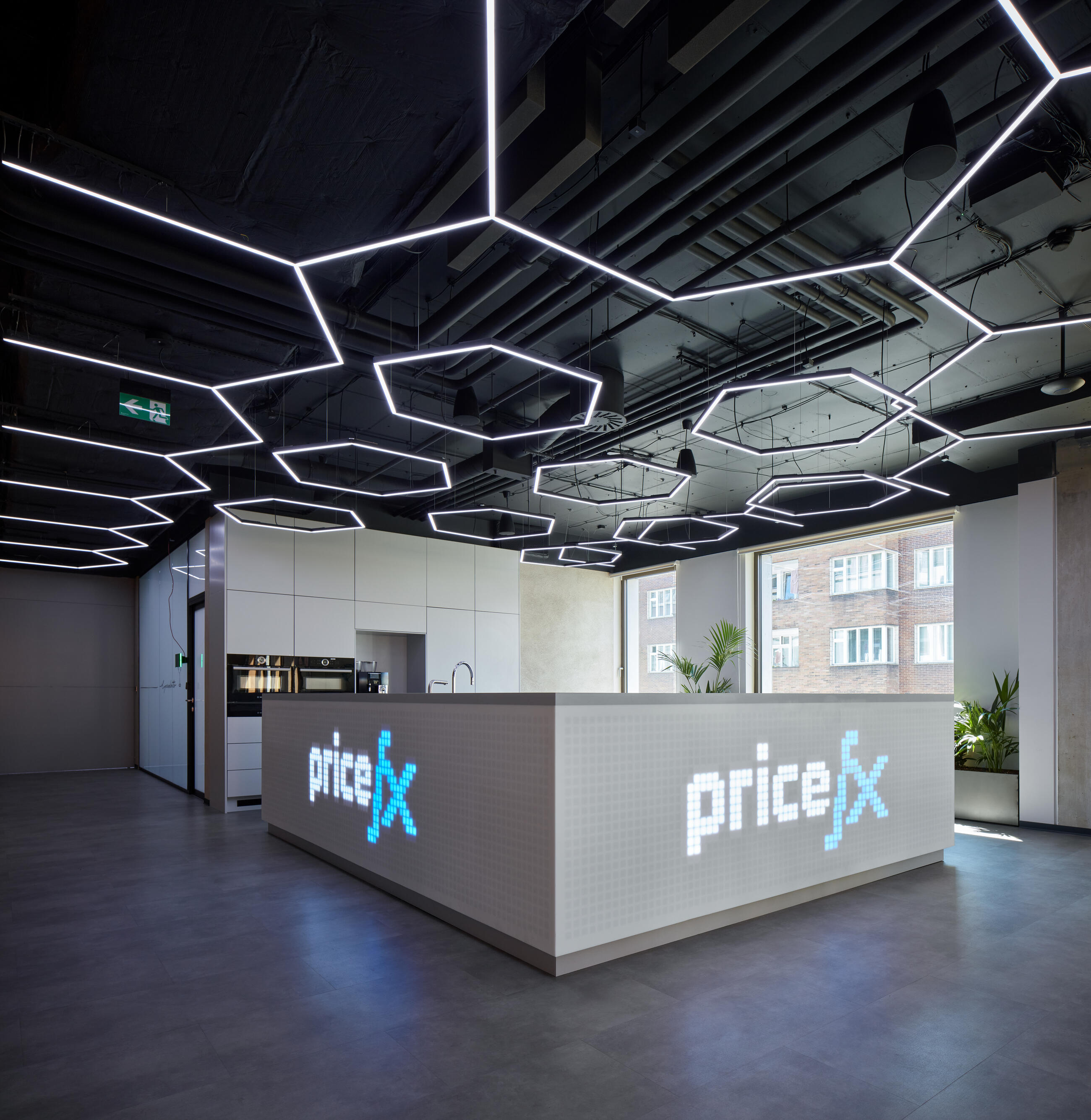 A comprehensive control system measures and evaluates environmental data in real time. This allows it to know how many people are in which room, what the air quality and ventilation intensity are, and it can also dynamically adjust the lighting colour scheme. The system can control every single chip and the ceiling becomes a screen. It provides optimal lighting during working hours, but can also interact with people's movements to create a corporate party atmosphere.
