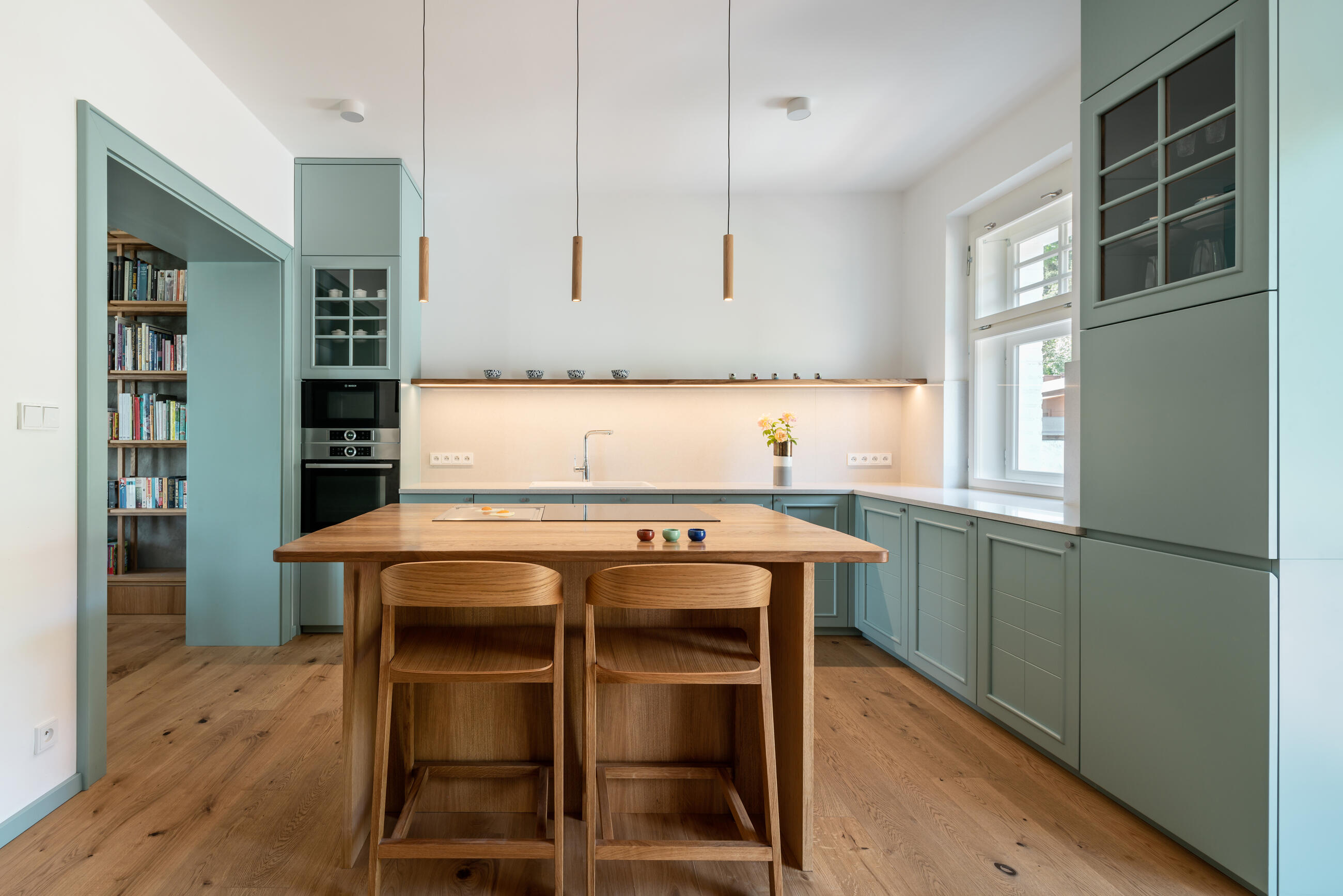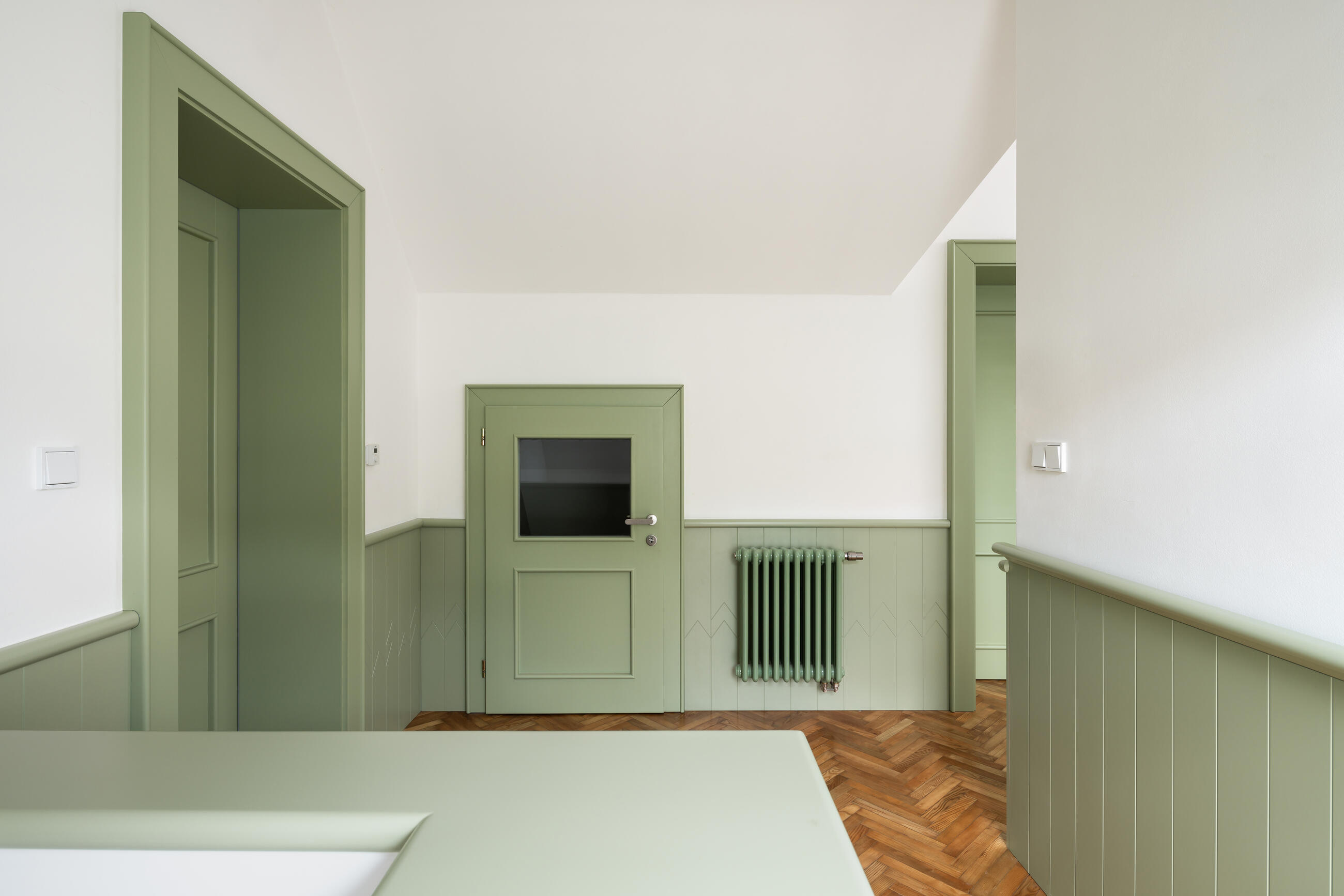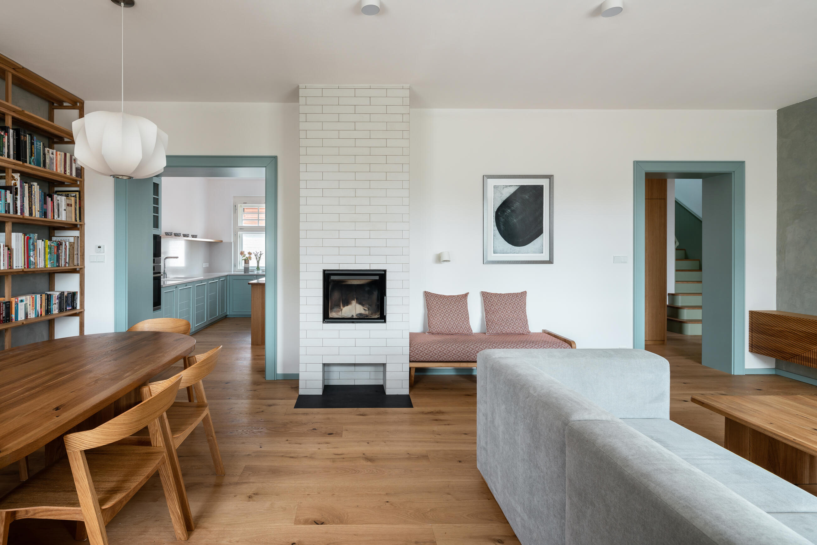 In addition to a complete technical modernisation, the property has undergone a change of layout. It has been given a direct connection between the kitchen and the garden and has also been extended in the original spirit with two more rooms and a bathroom. In addition to empathizing with the intent of the original architecture, the interior subtly incorporates the clients' individual life experiences and inspiration from Japan, on the one hand, and the world of the UK on the other. As a tribute to the original builders, we have added one special door to a child's fantasy world where any adult can only kneel in humility.