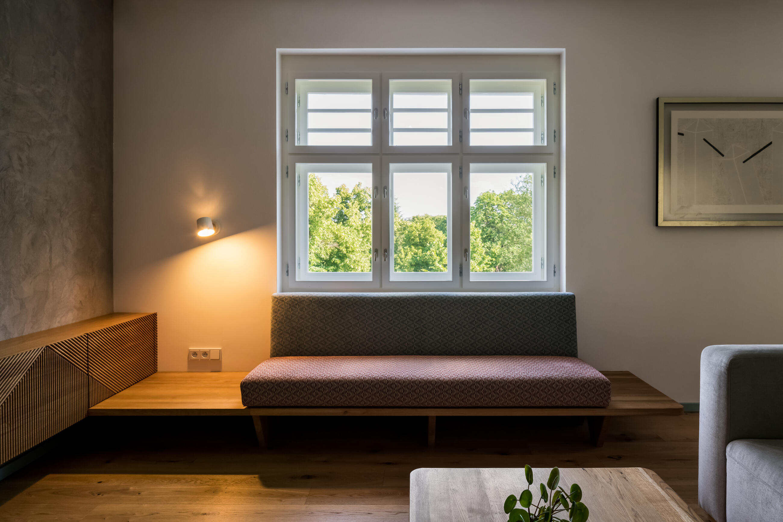 The southern slopes of the first large suburb in the capital city of Prague have always attracted people to posh residential living. However, the romanticizing delirium of typical construction with steep roofs, ostentatious stone soffits and superfluous brick cladding used to be a laughing stock for modernist architects in their time, who dreamed of strip windows, flat roofs and central heating. Many prophets of the glorious industrial world did not give them hope for more than a generation.