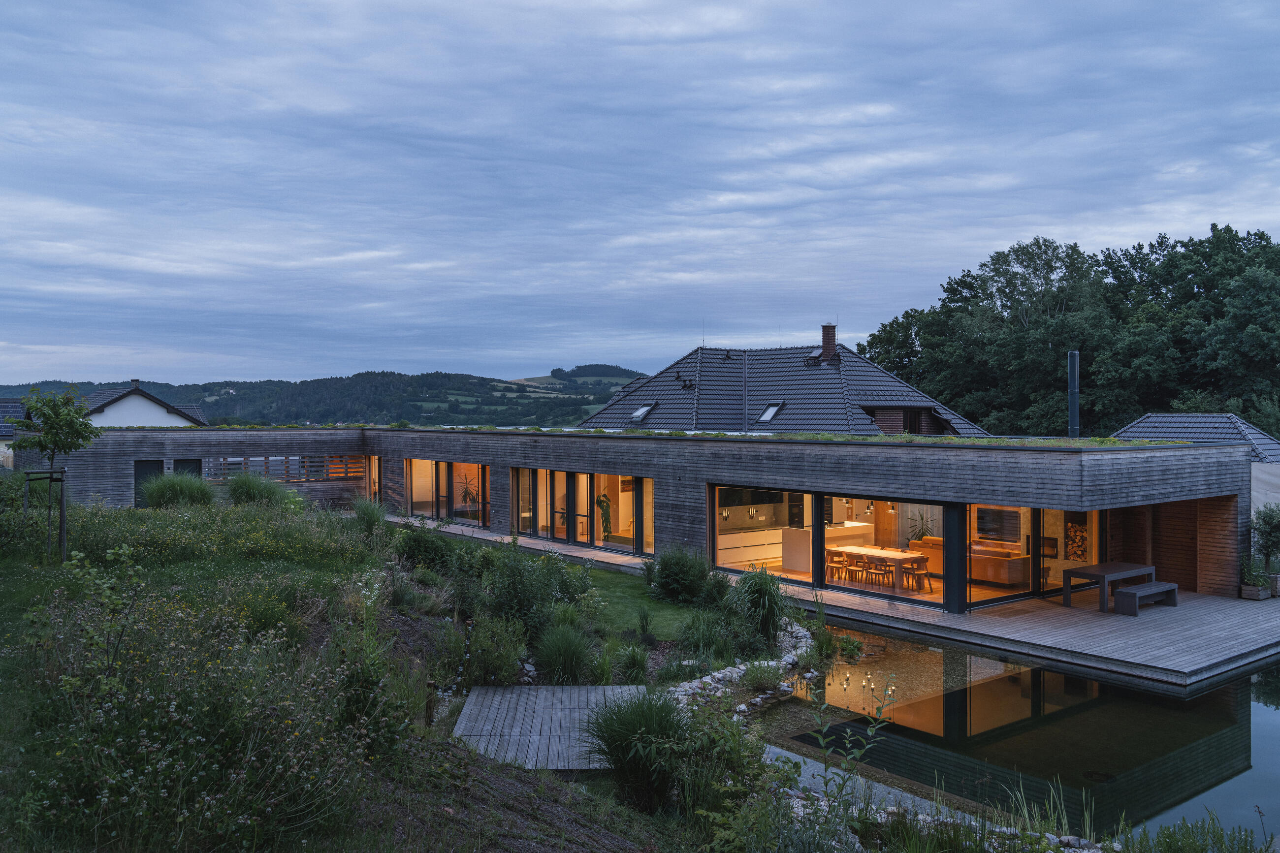 | Collaborators and suppliers | Garden design and realization: Lianna Garden Design Green roof: Roagrotex Metal roof: POKLEM Fireplace: Kamnářství Jíra Kitchen and interior furniture: Truhlářství Tomek |