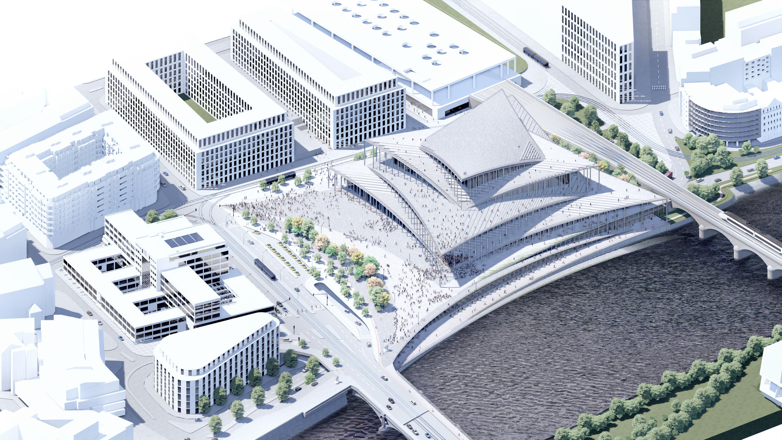 "Many aspects had to be taken into account when selecting the winning design. The site for the philharmonic hall currently complicates the opportunity for people to meet instead of encouraging it, so the emphasis was not only on the architecture and operation of the building, but also on the design of the public spaces in the surrounding area. The Vltava Philharmonic Hall will become a vibrant center of life in Vltavská street – a new city park will stretch eastwards from the building, the south side will open up access to the water, a square will be created on the west side and there will be a view of the new Bubny-Zátory district to the north. The building itself will be accessible from all directions and levels," says Michal Sedláček, chairman of the competition’s jury.